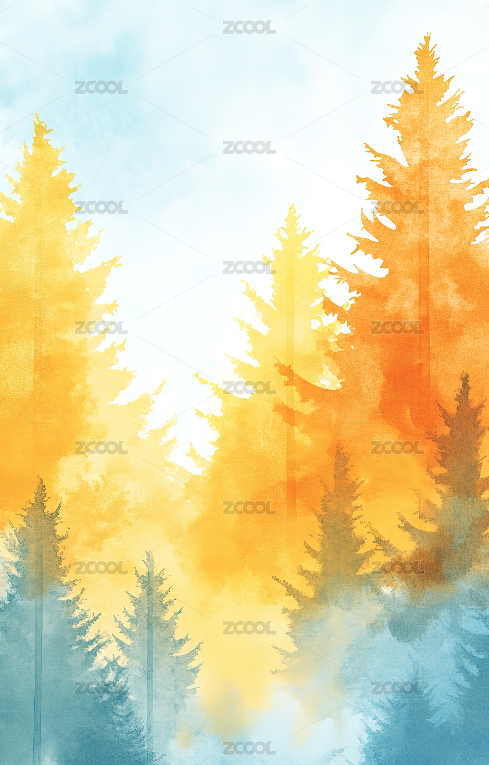 水彩森林插画