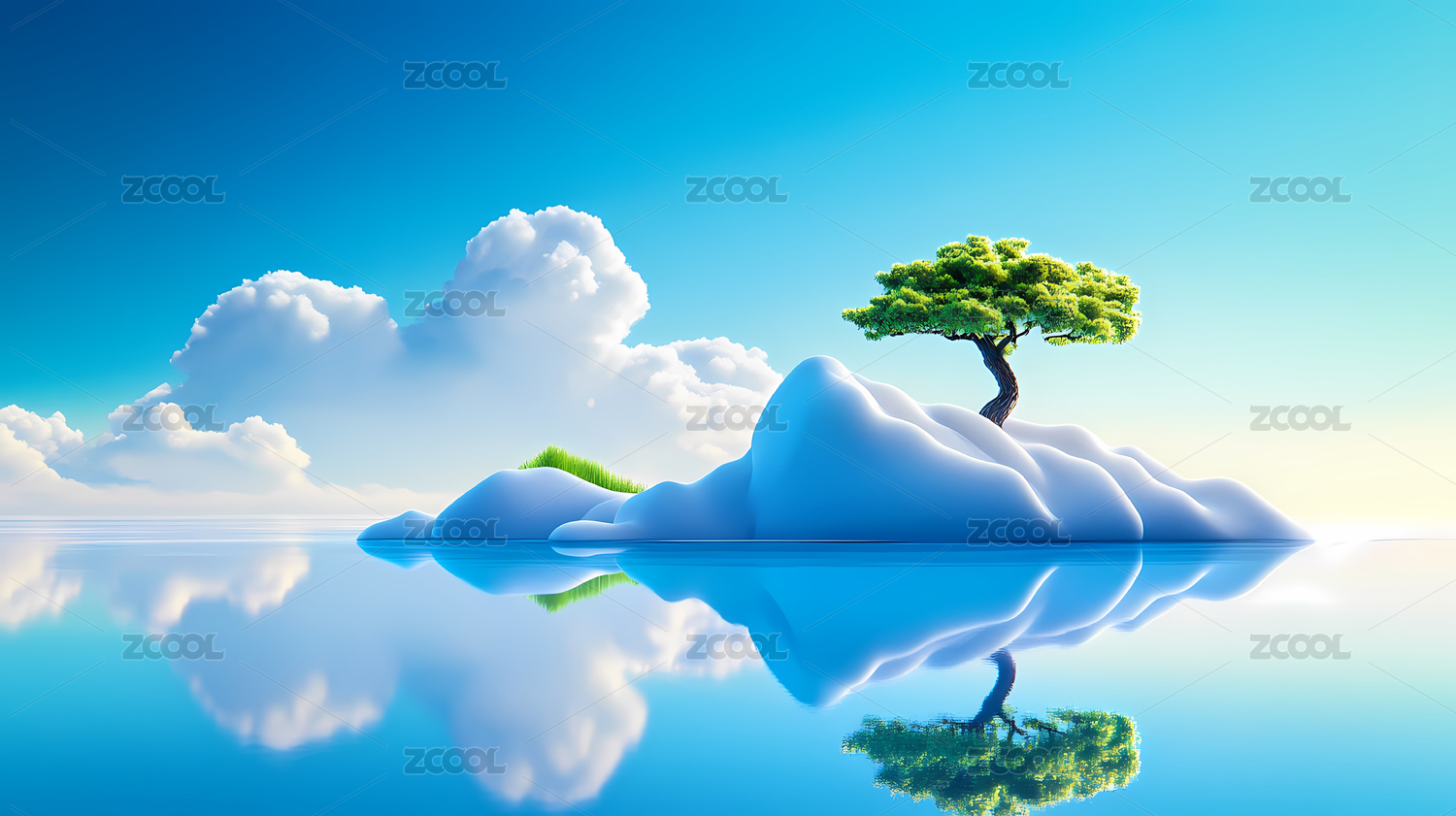 孤岛绿树映蓝天