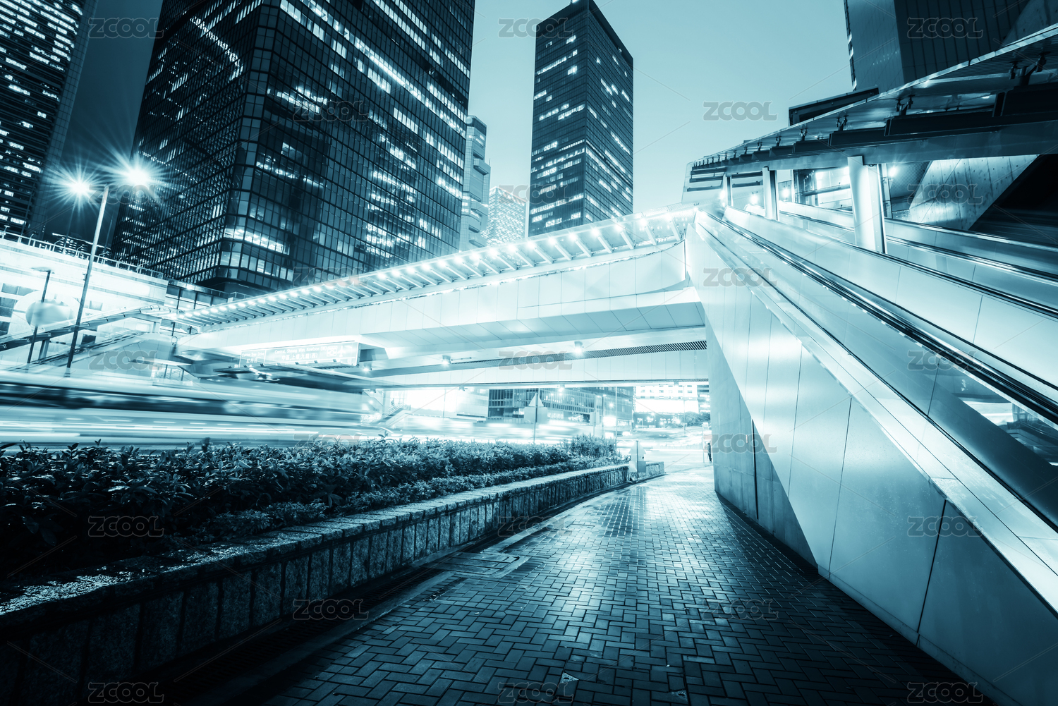 上海陆家嘴金融区建筑景观夜景和城市街道车流光影轨迹