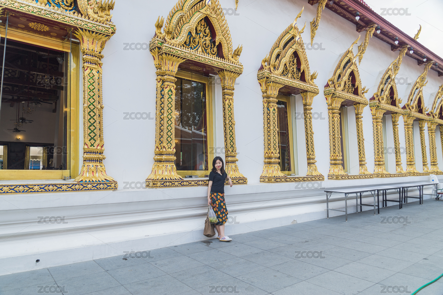 中国美女在泰国曼谷考山路的差纳颂堪寺游玩