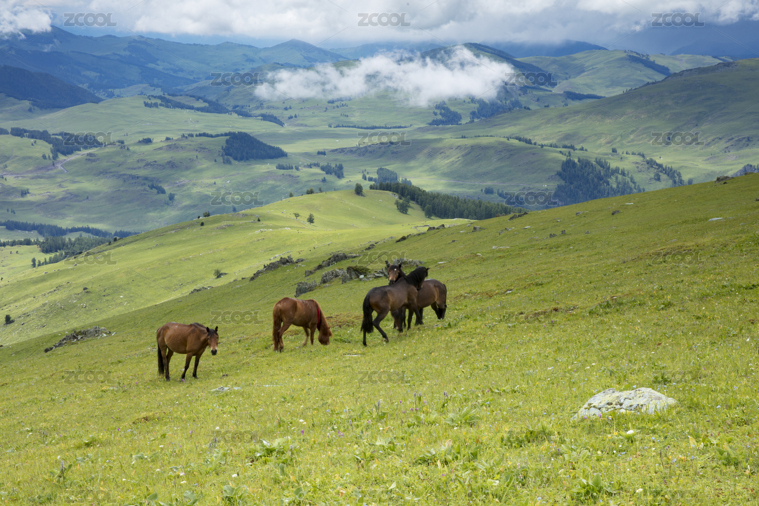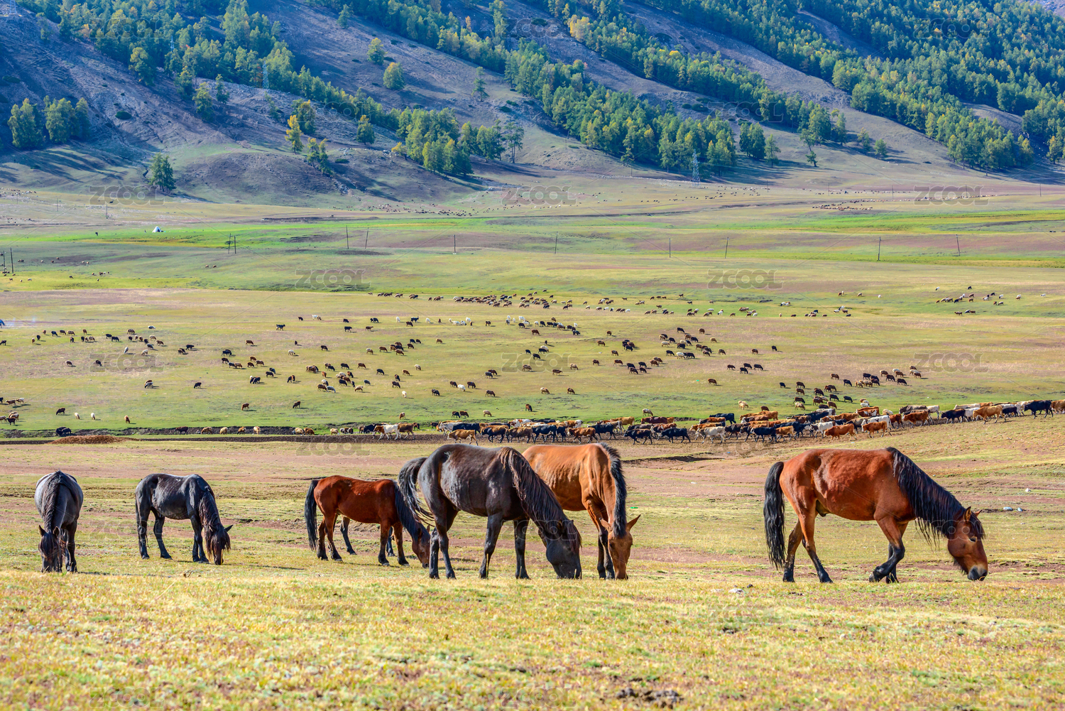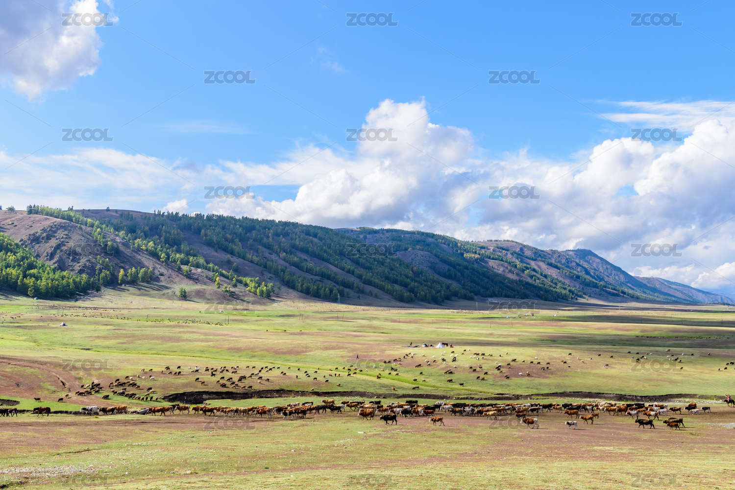 中国新疆布尔津县贾登峪镇旁草场牛羊群