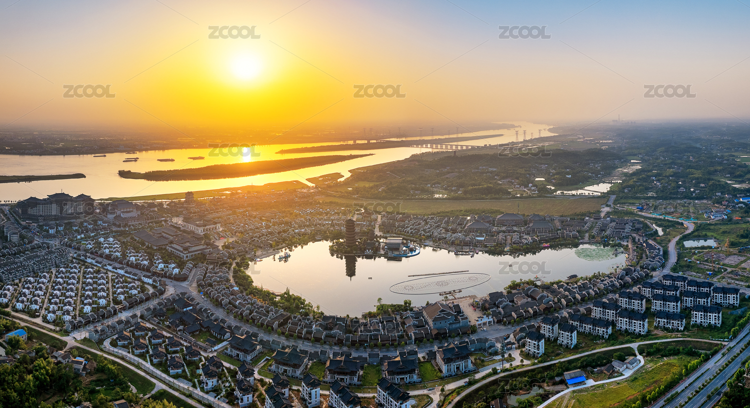 航拍四川内江隆昌的夕阳晚霞乡村风光