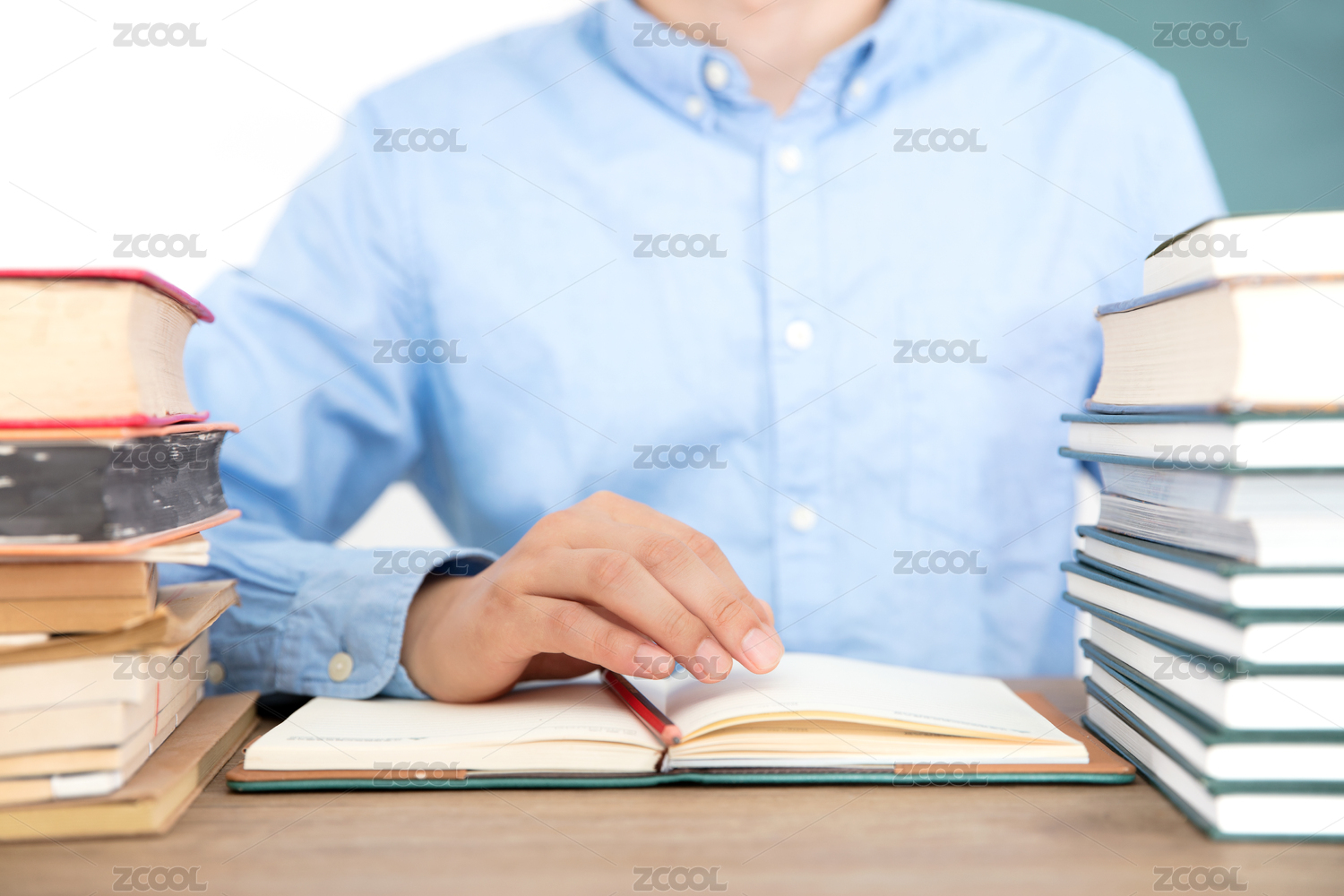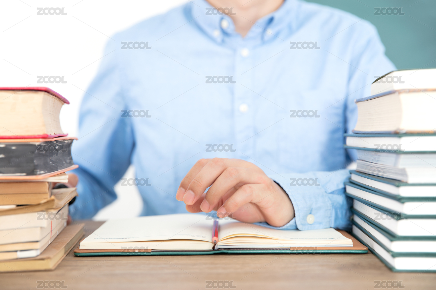 握笔在书桌上写字作笔记中文书籍