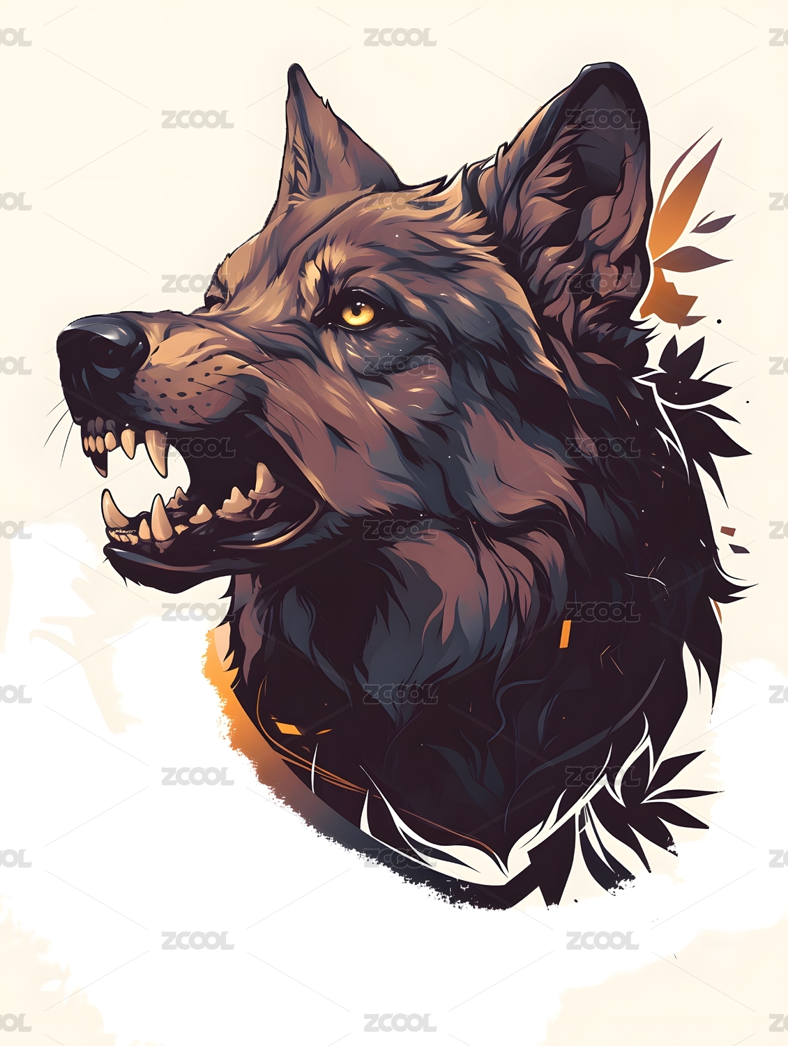 坐着的凶猛狼狗动物插画