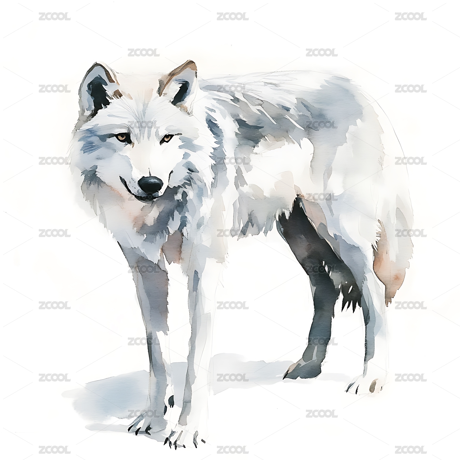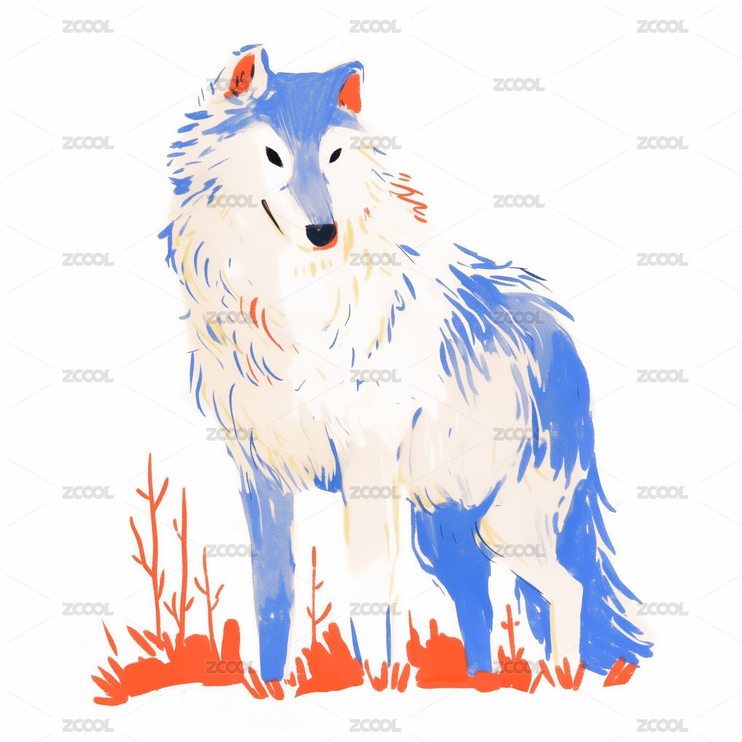 白色狼插画