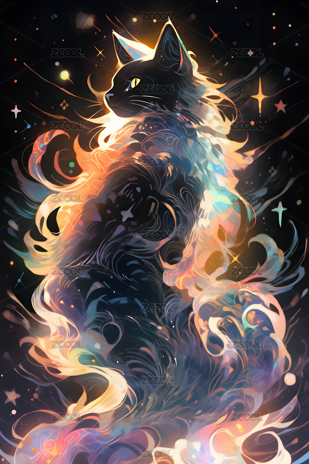 星光猫咪插画