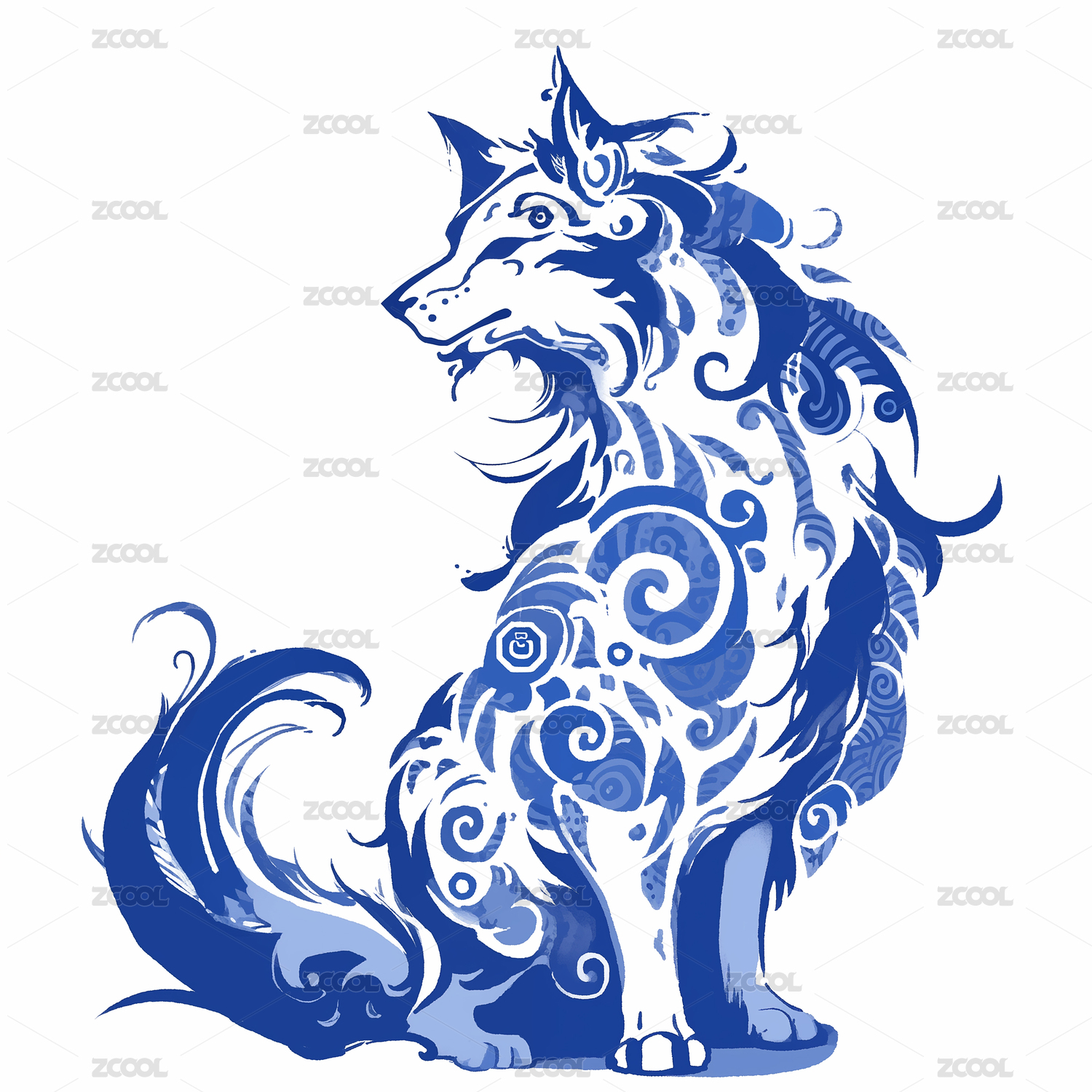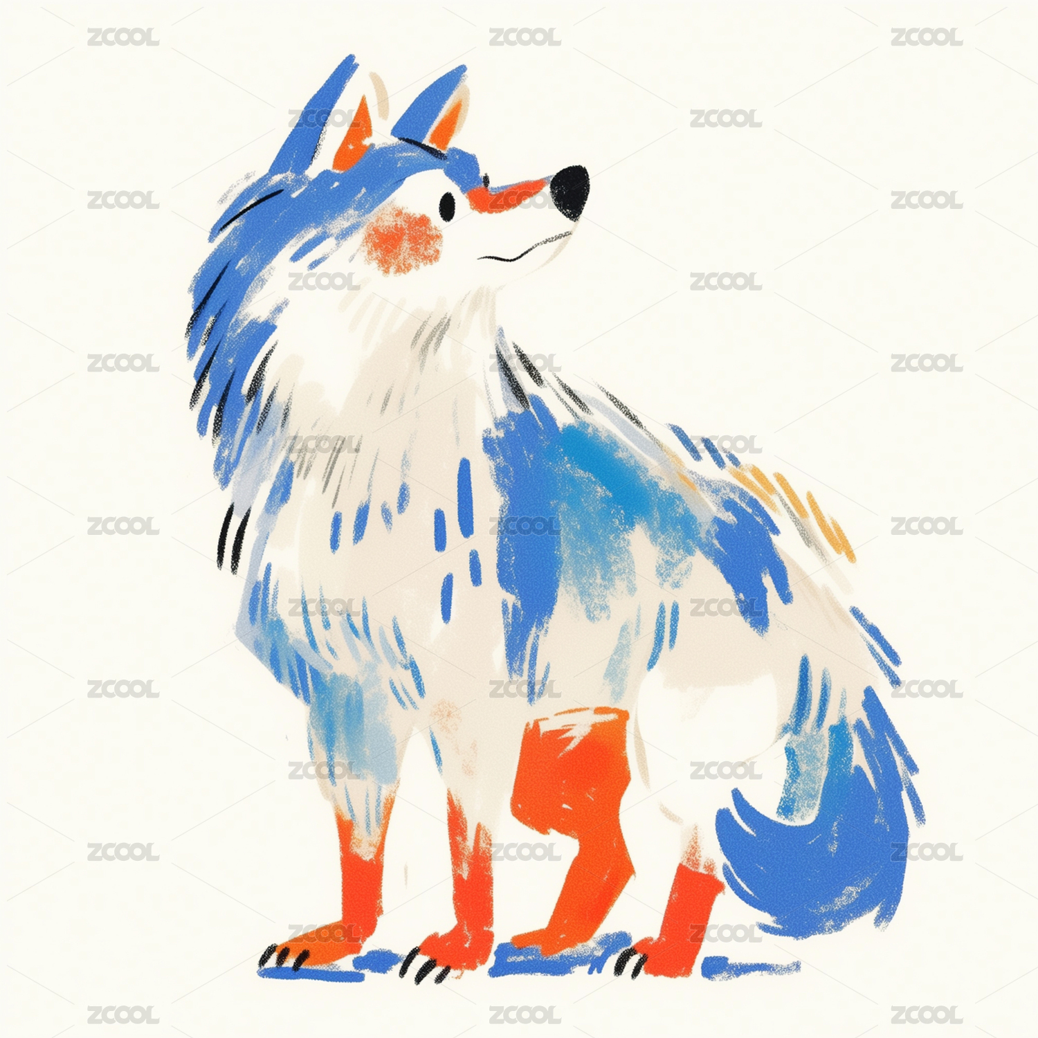 卡通狼狗图案印花插画