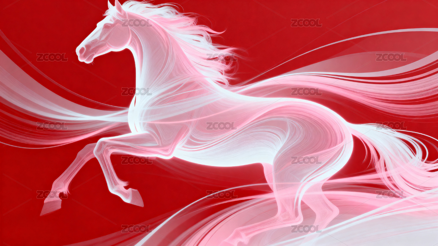 红色背景上的白马