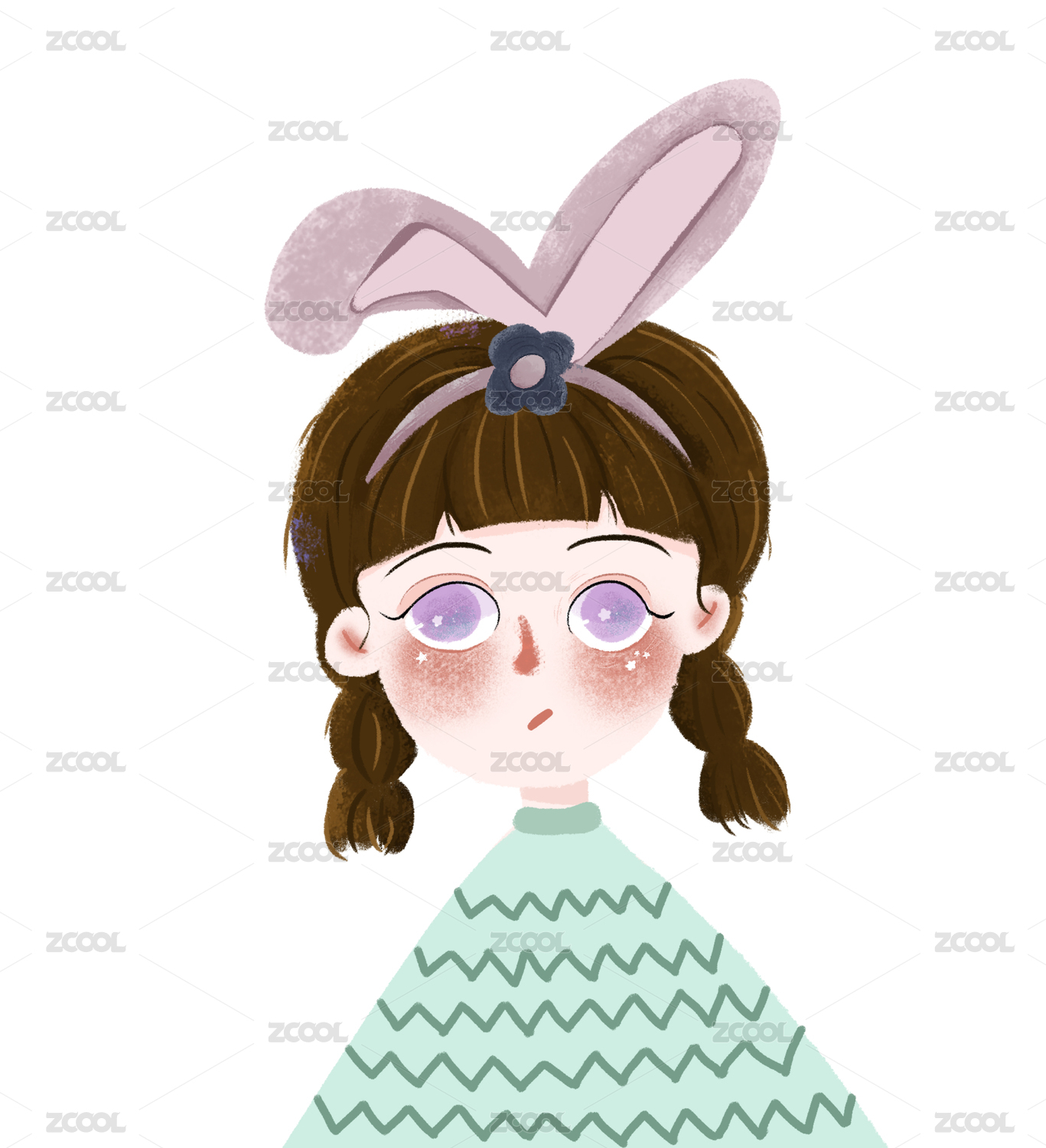 温暖手绘-头上戴花的卷发大眼睛女孩2
