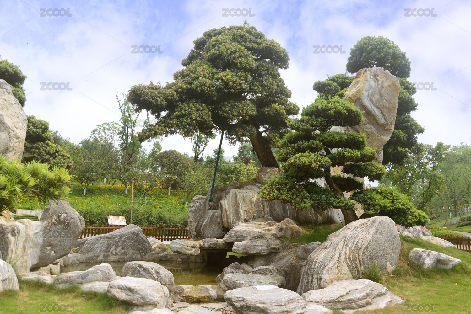 植物园里的松树盆景