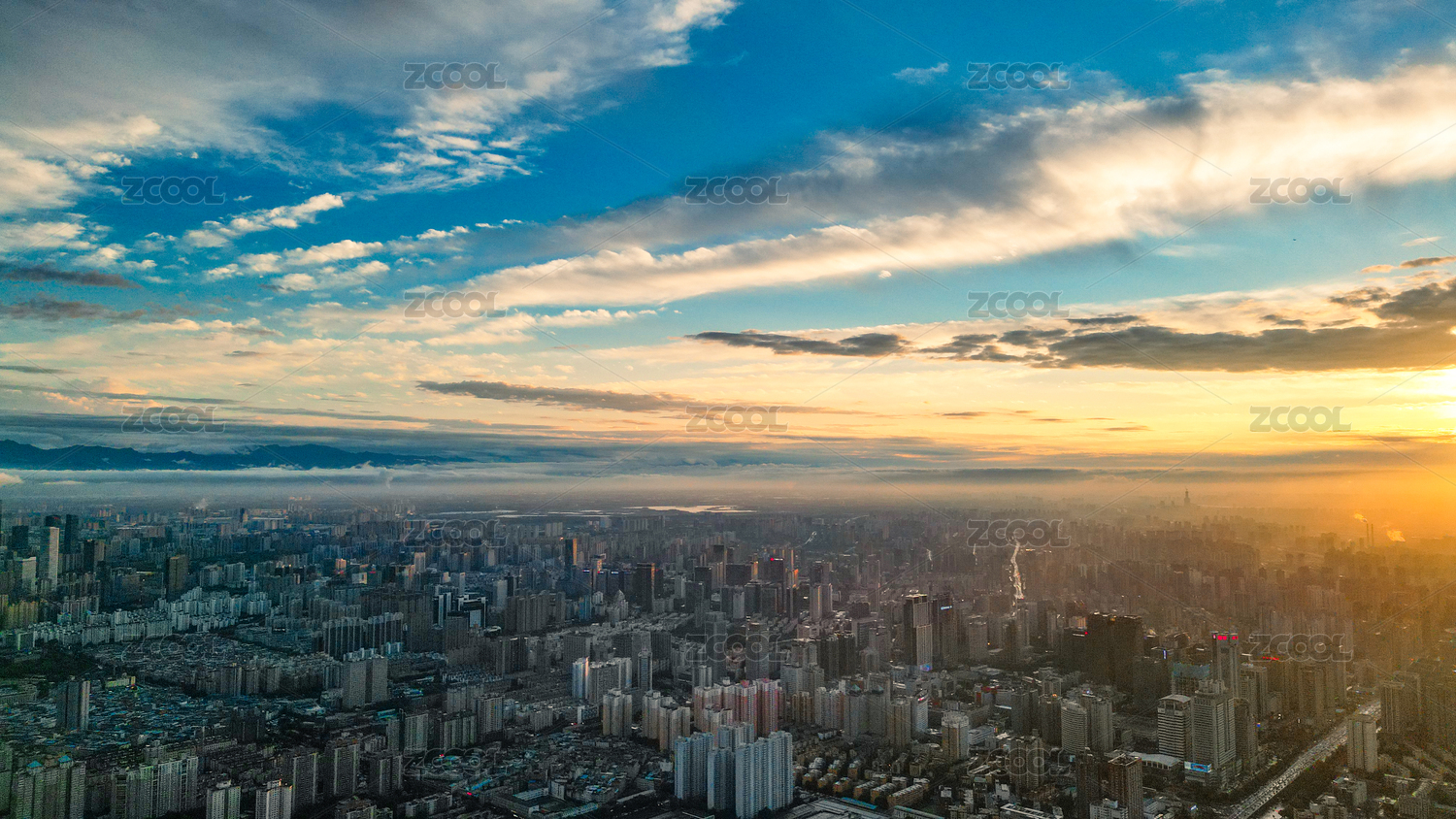 洛阳,城市,CBD,楼房,建筑,天际线,日出,朝霞,航拍,风光