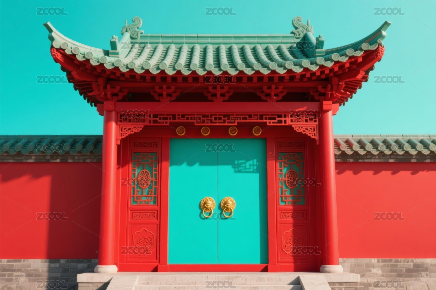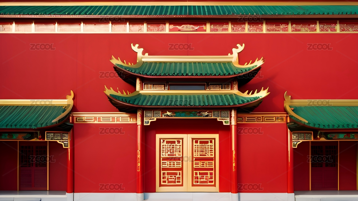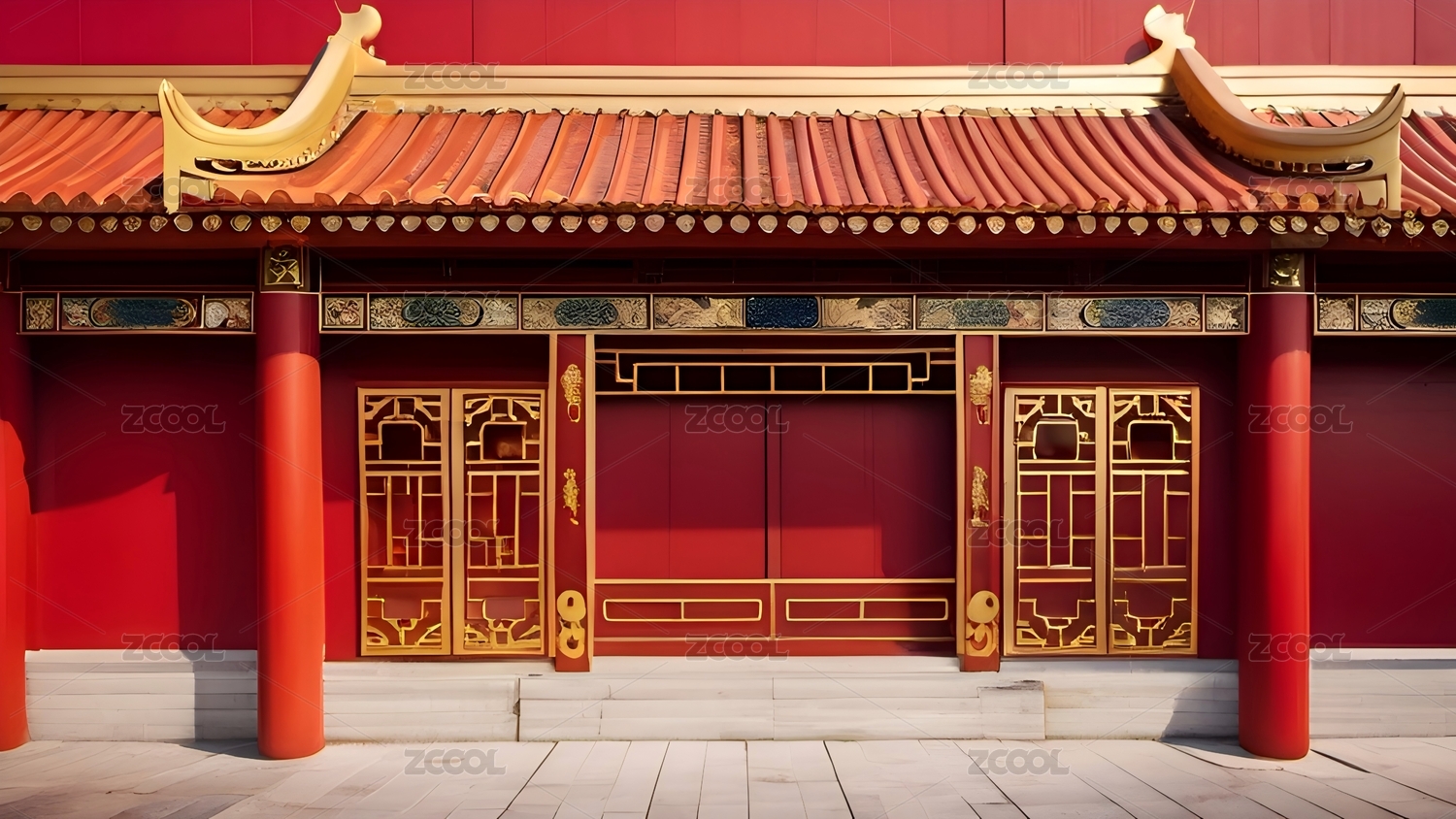中国传统建筑局部,金碧辉煌用金色边框窗户