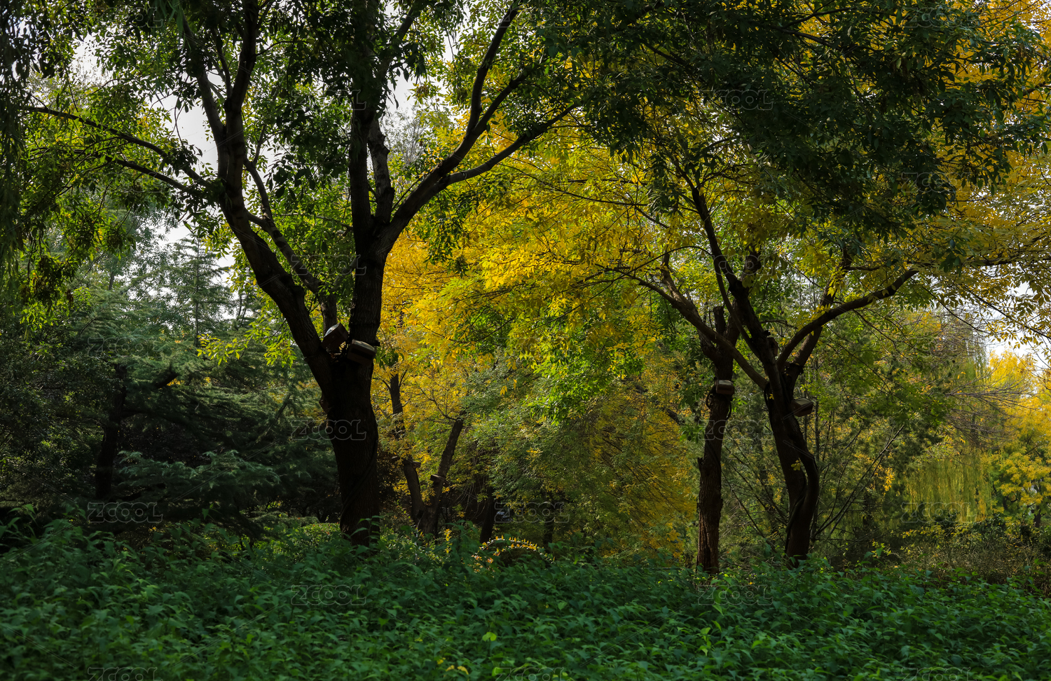 苏州园林拙政园阳光穿透树叶 唯美耶稣光