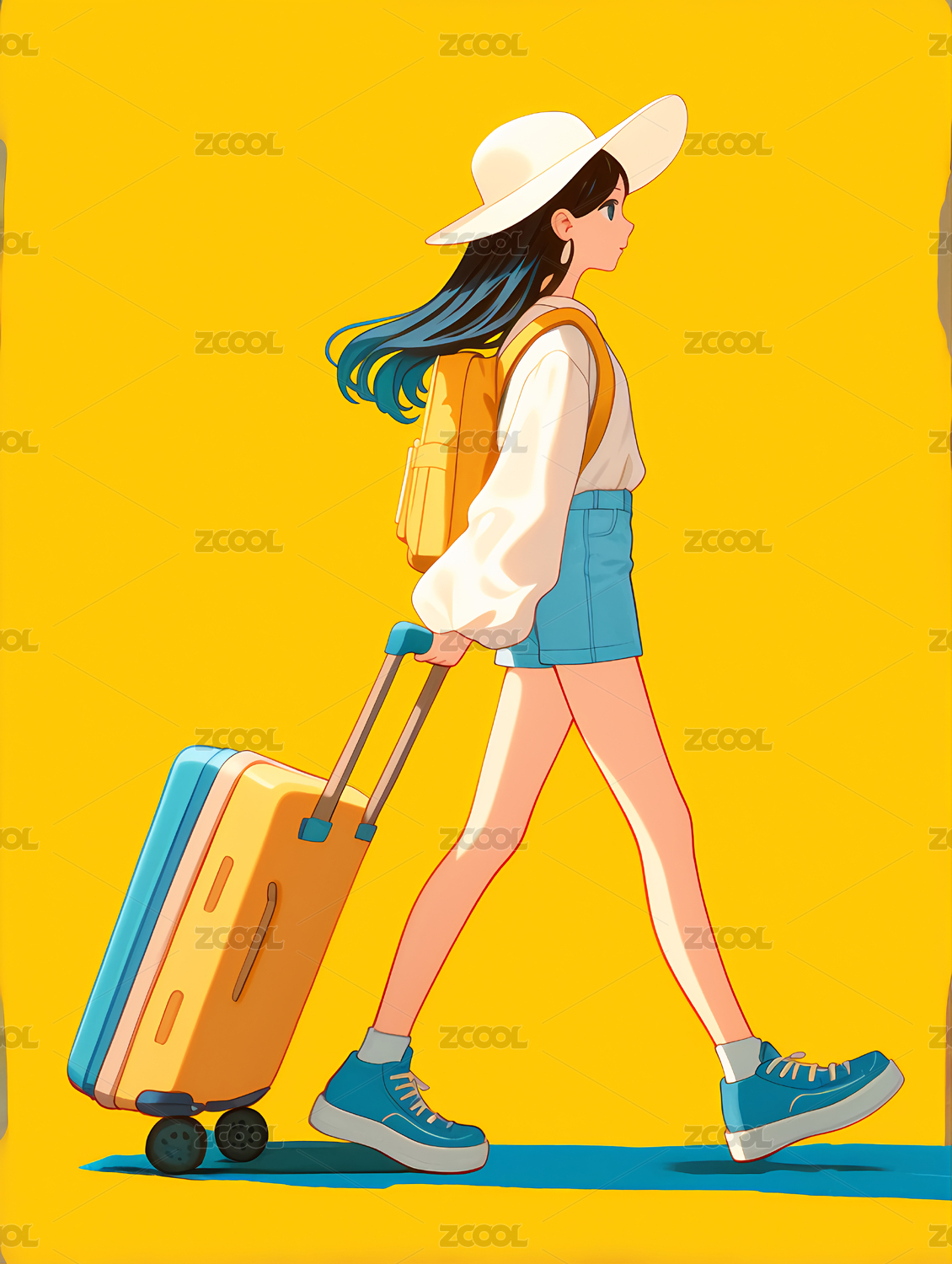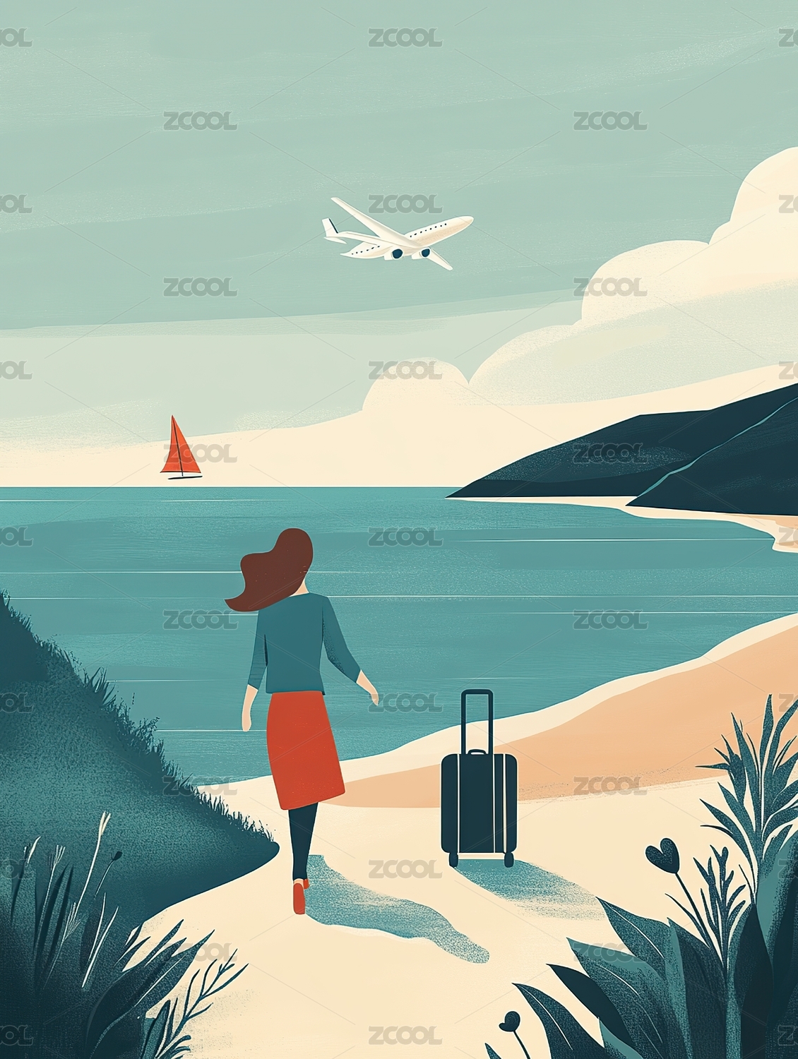 旅游,旅行,出行,插画,AIGC202404,行李箱,行李