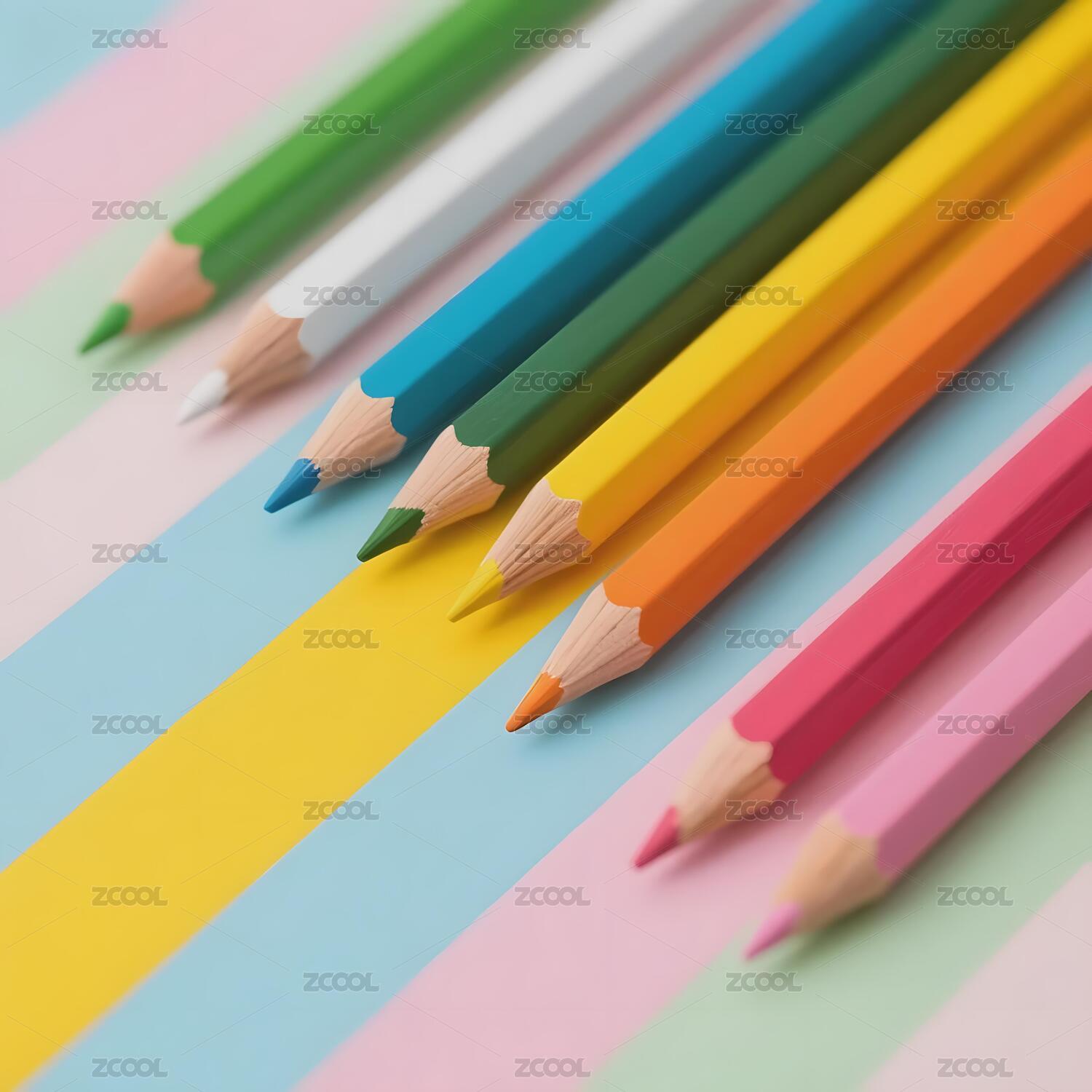 彩色背景下五颜六色的彩色铅笔,创意摆拍