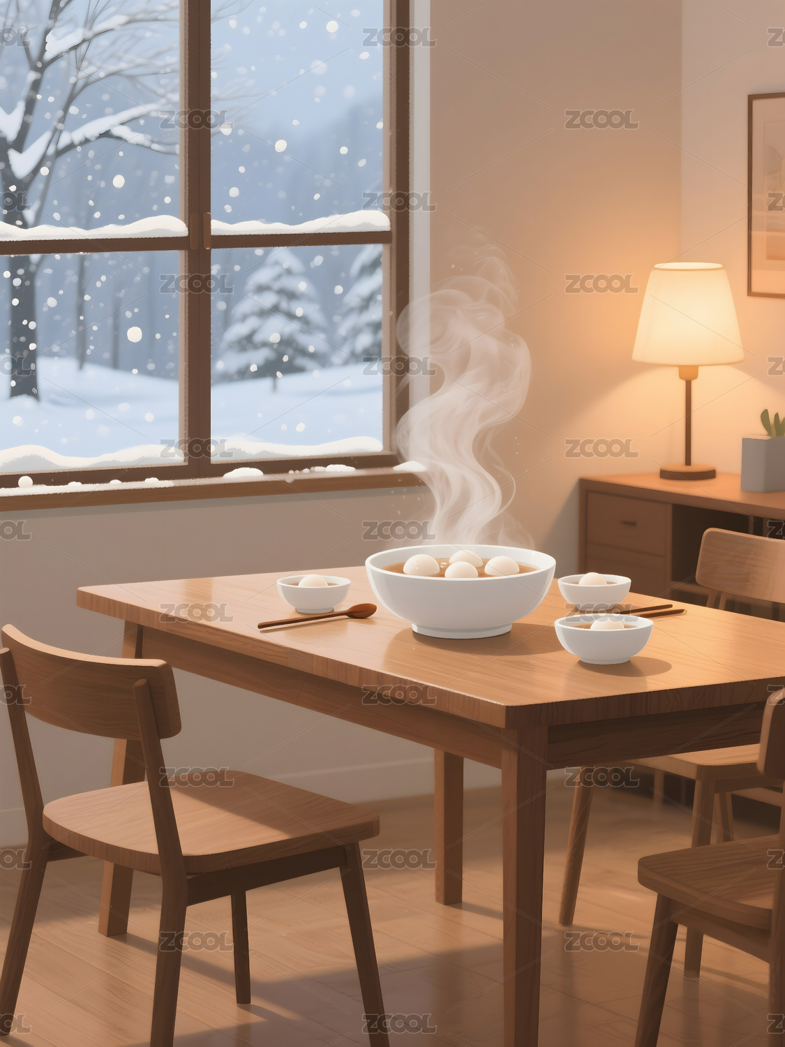 冬季窗前的早餐插画