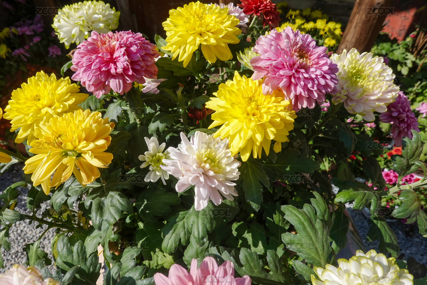 山东济南趵突泉建筑水面各种颜色秋菊花