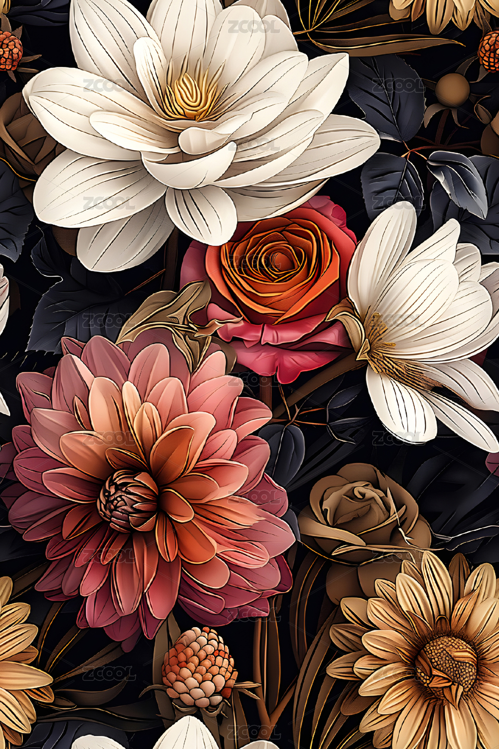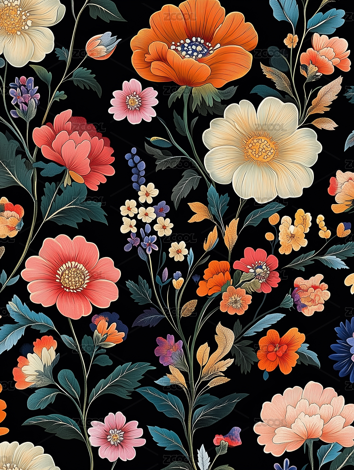 数码复古彩色复杂花卉装饰抽象图形海报背景