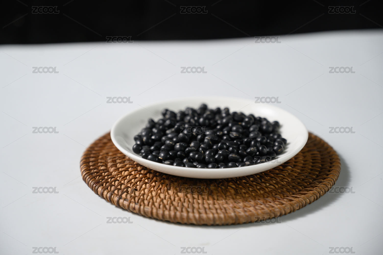 桌面上的盘子里的干爽的黑豆