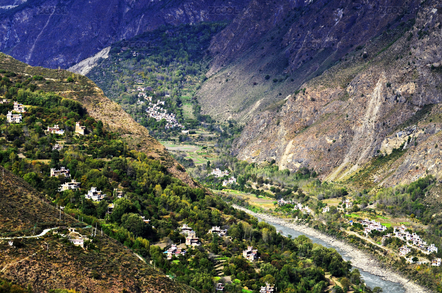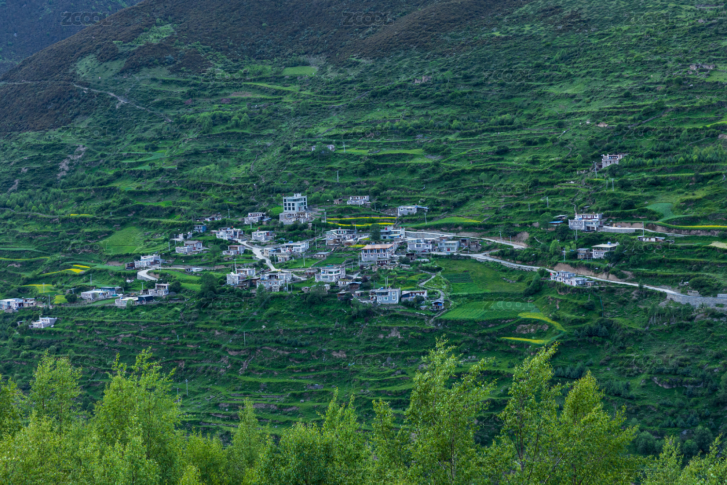 中国西藏陈塘镇 远眺夏尔巴人在山上的住所