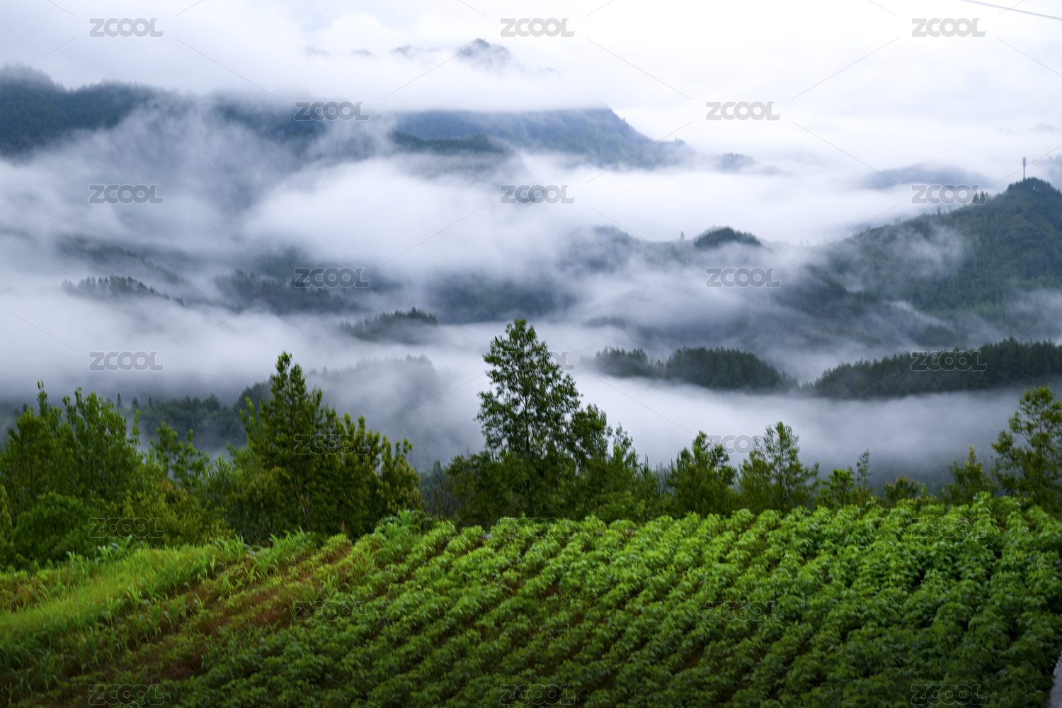 广东省阳江市阳春双滘鸡笼顶风光,大雾笼罩着的山脉