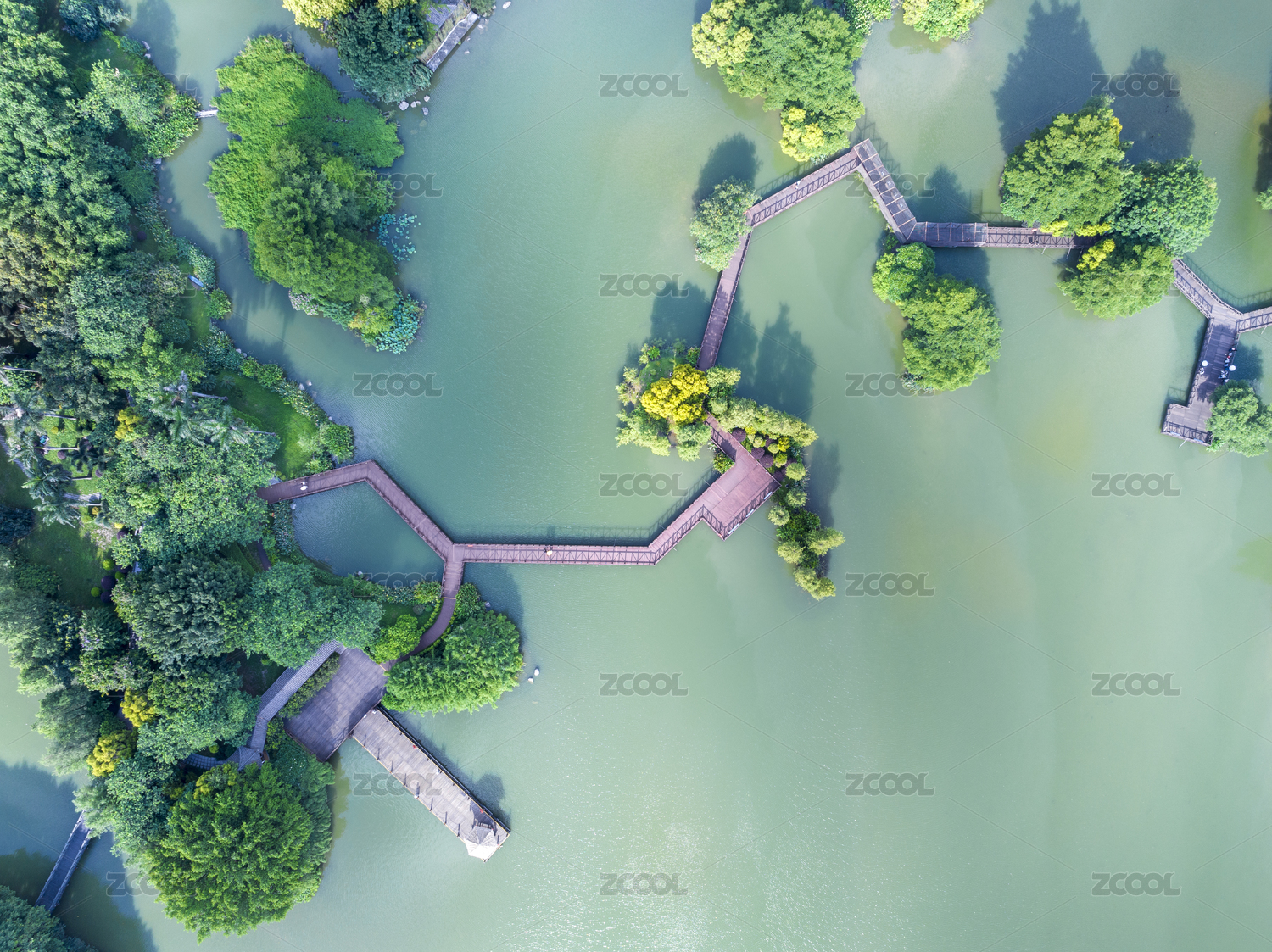 航拍杭州西湖景区浴鹄湾 霁虹桥