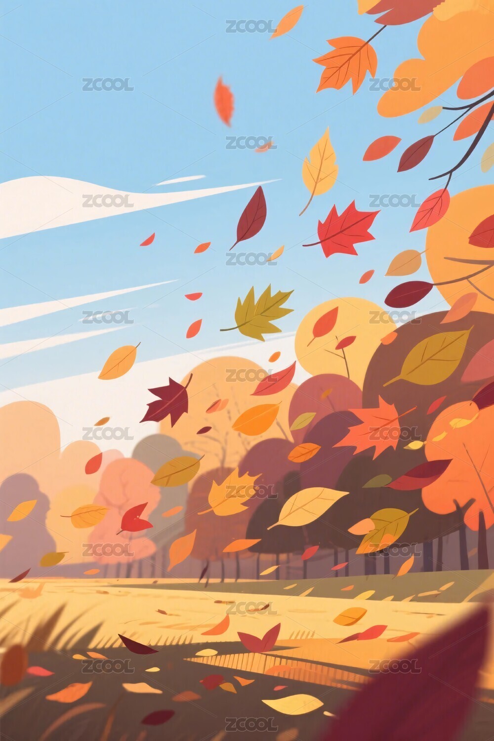 秋天,秋季,节气,壁纸,氛围感,插画,留白,扁平风格,竖构图,黄色