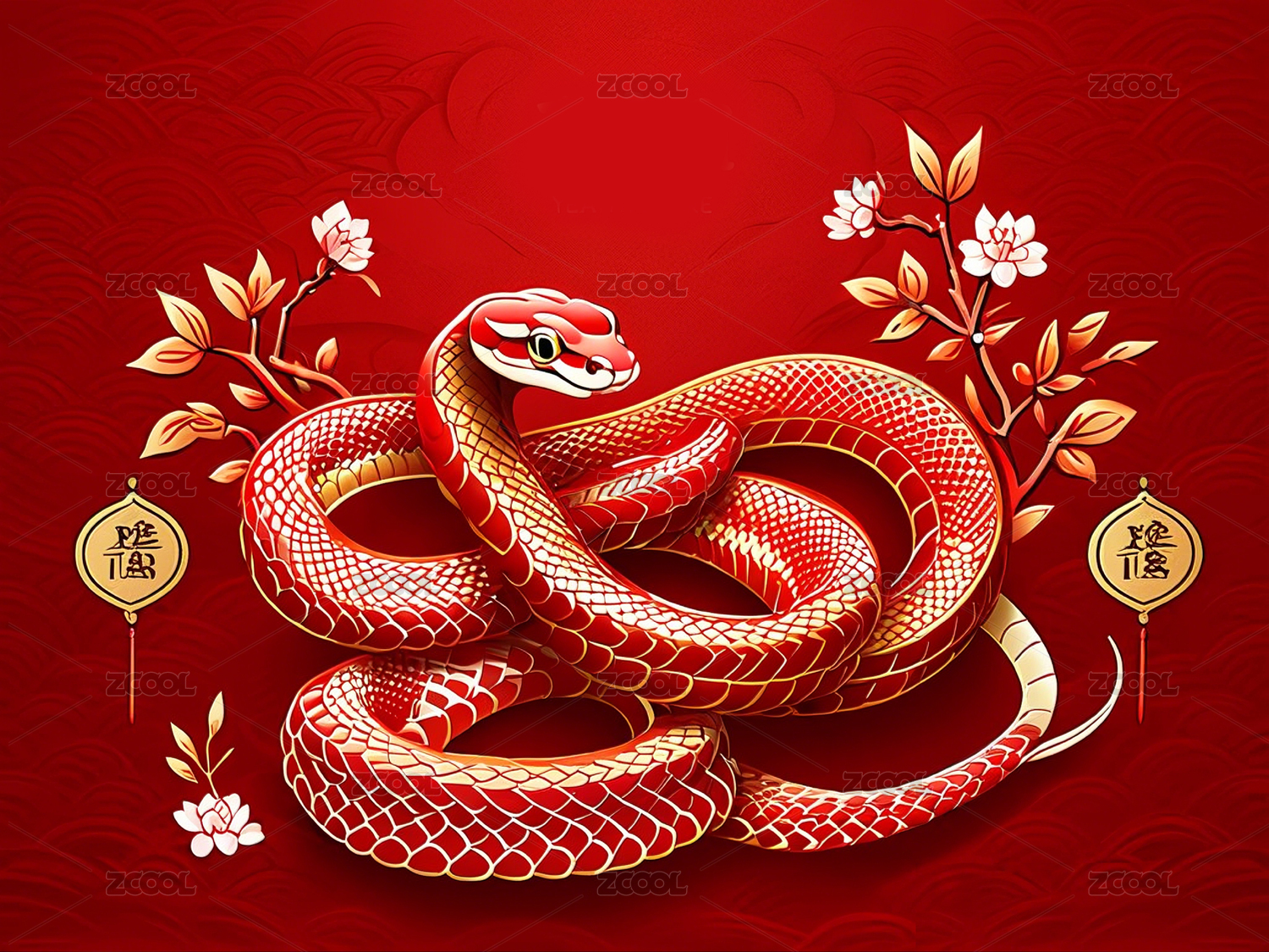 蛇,新年,春节,生肖,蛇年,图腾,祥瑞,喜庆,红色,背景