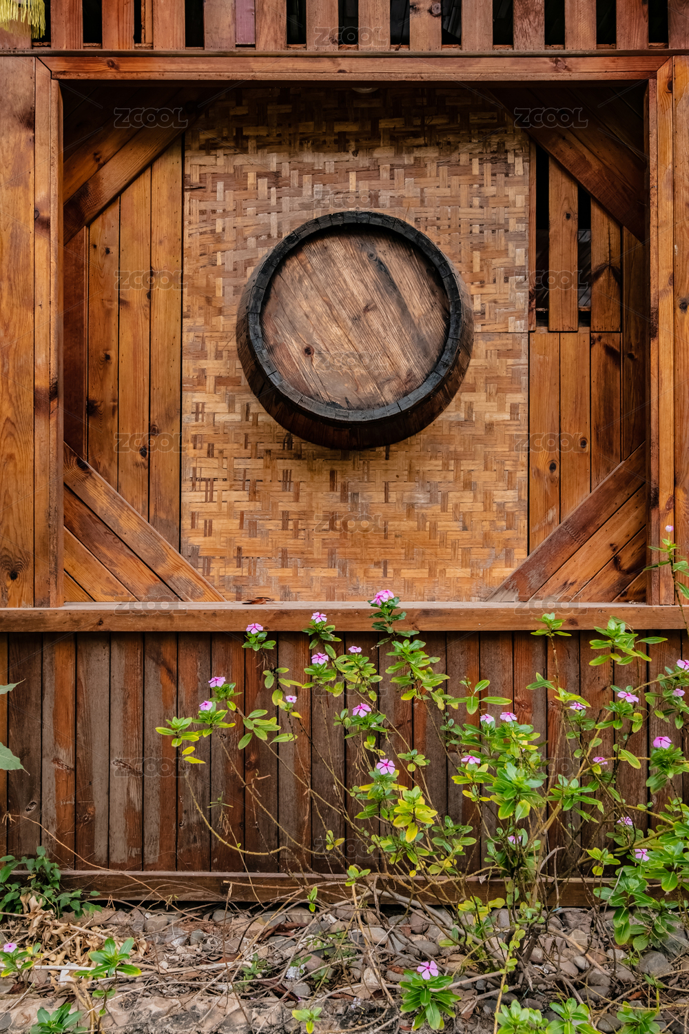 中国云南省景洪市街道民居住宅木桶装饰建筑