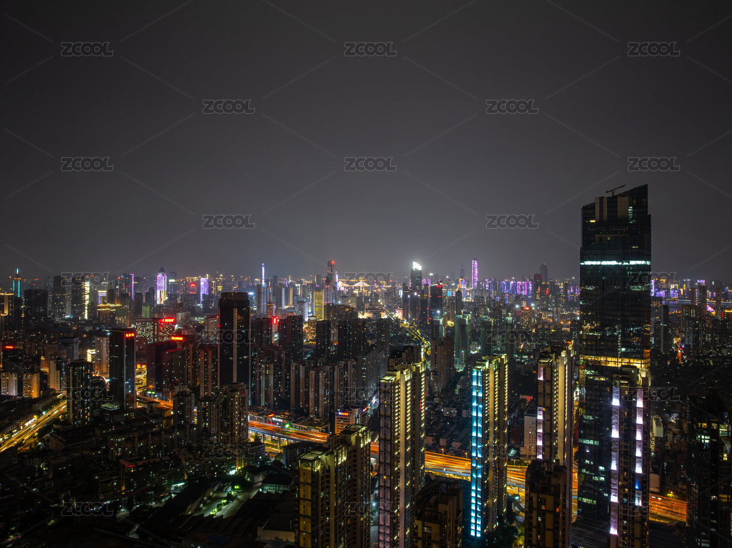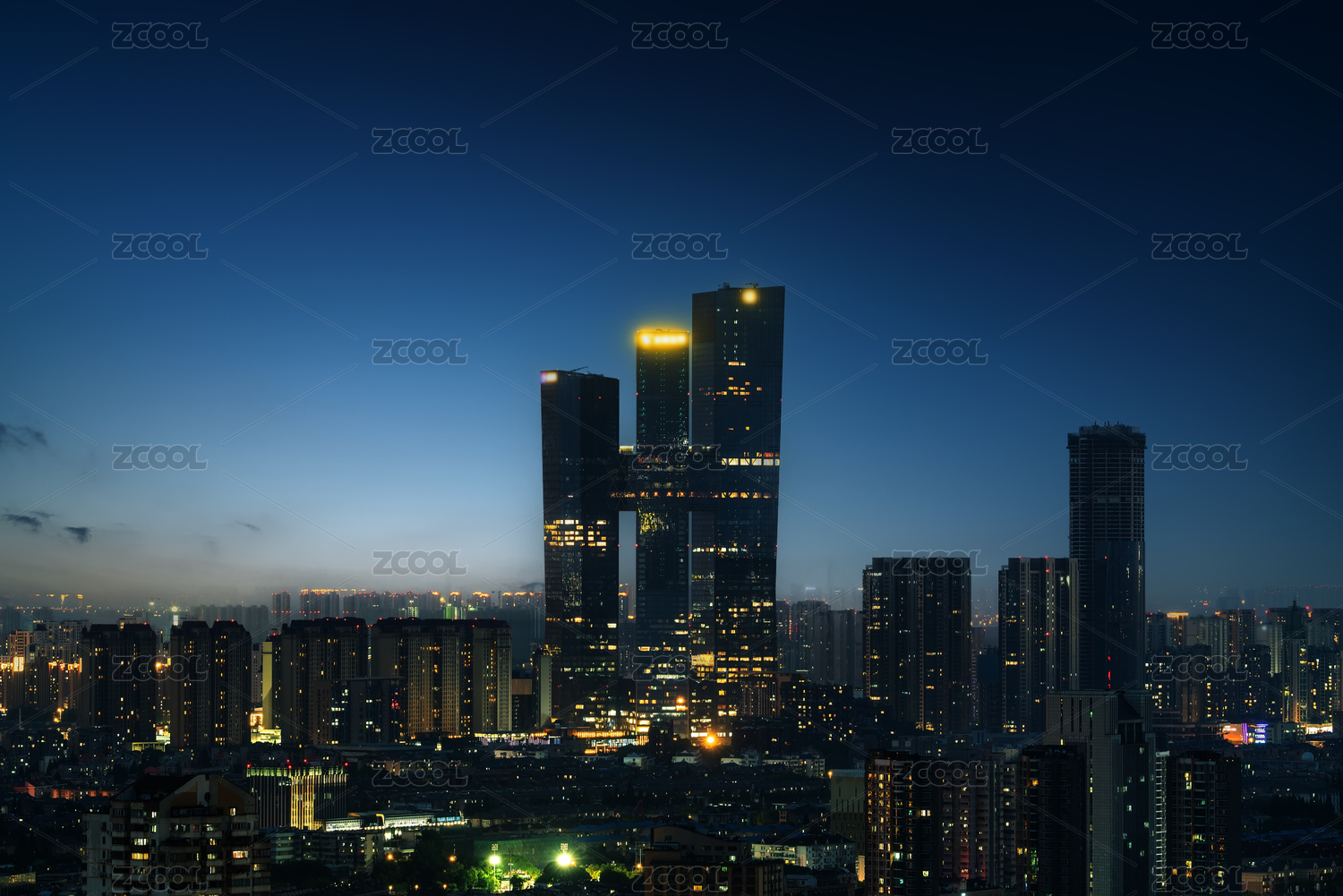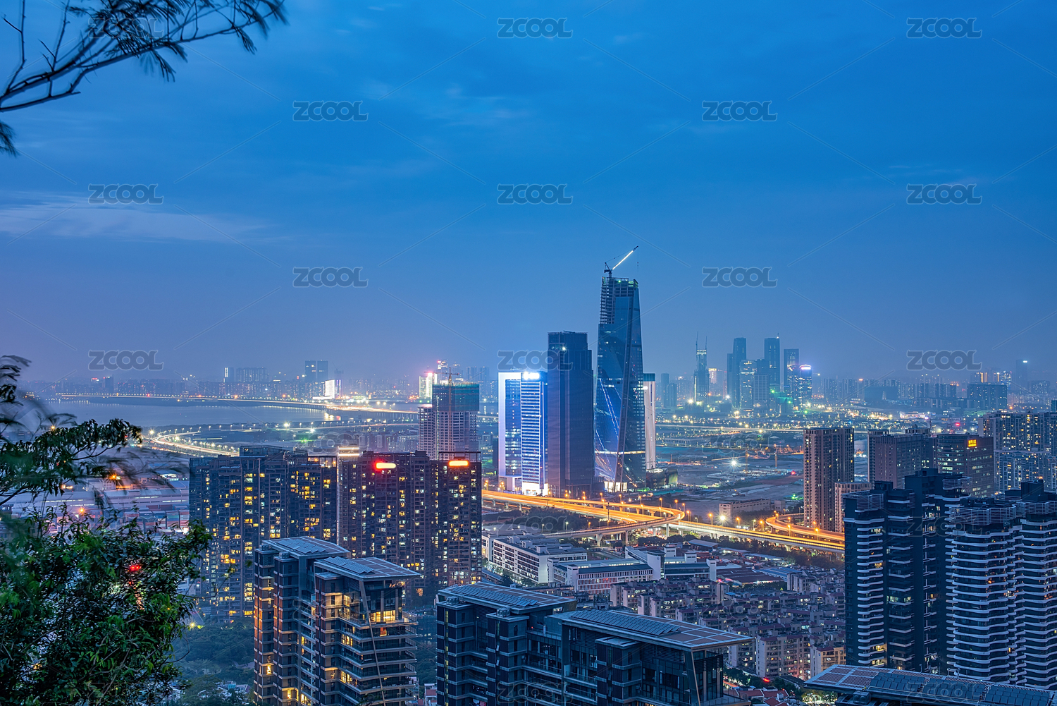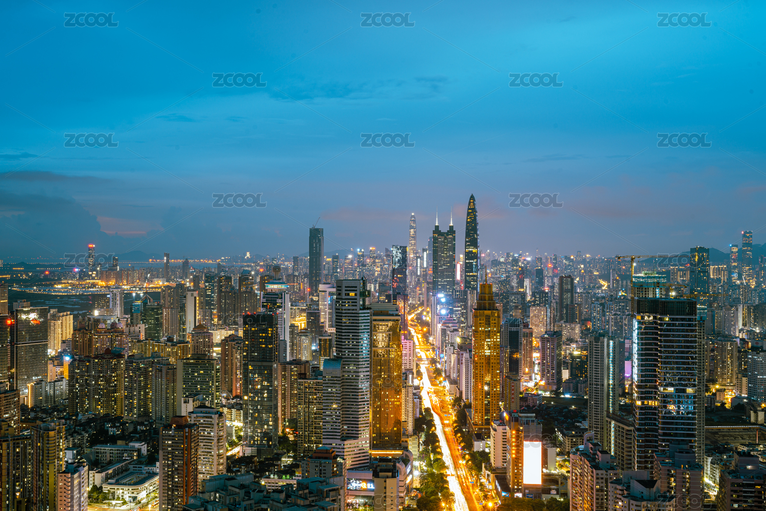 中国广东省深圳福田城市天际线高楼大厦夜景风光
