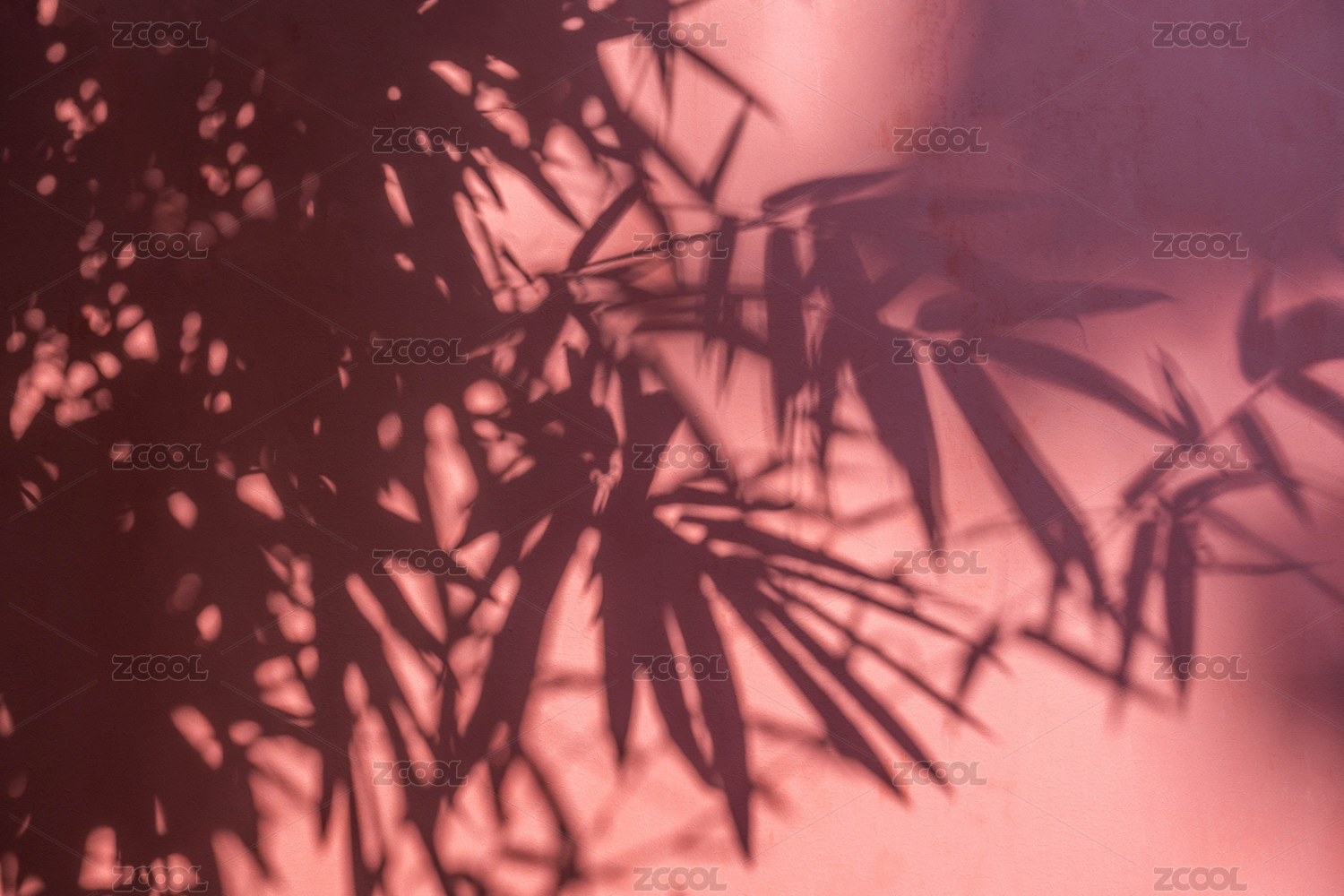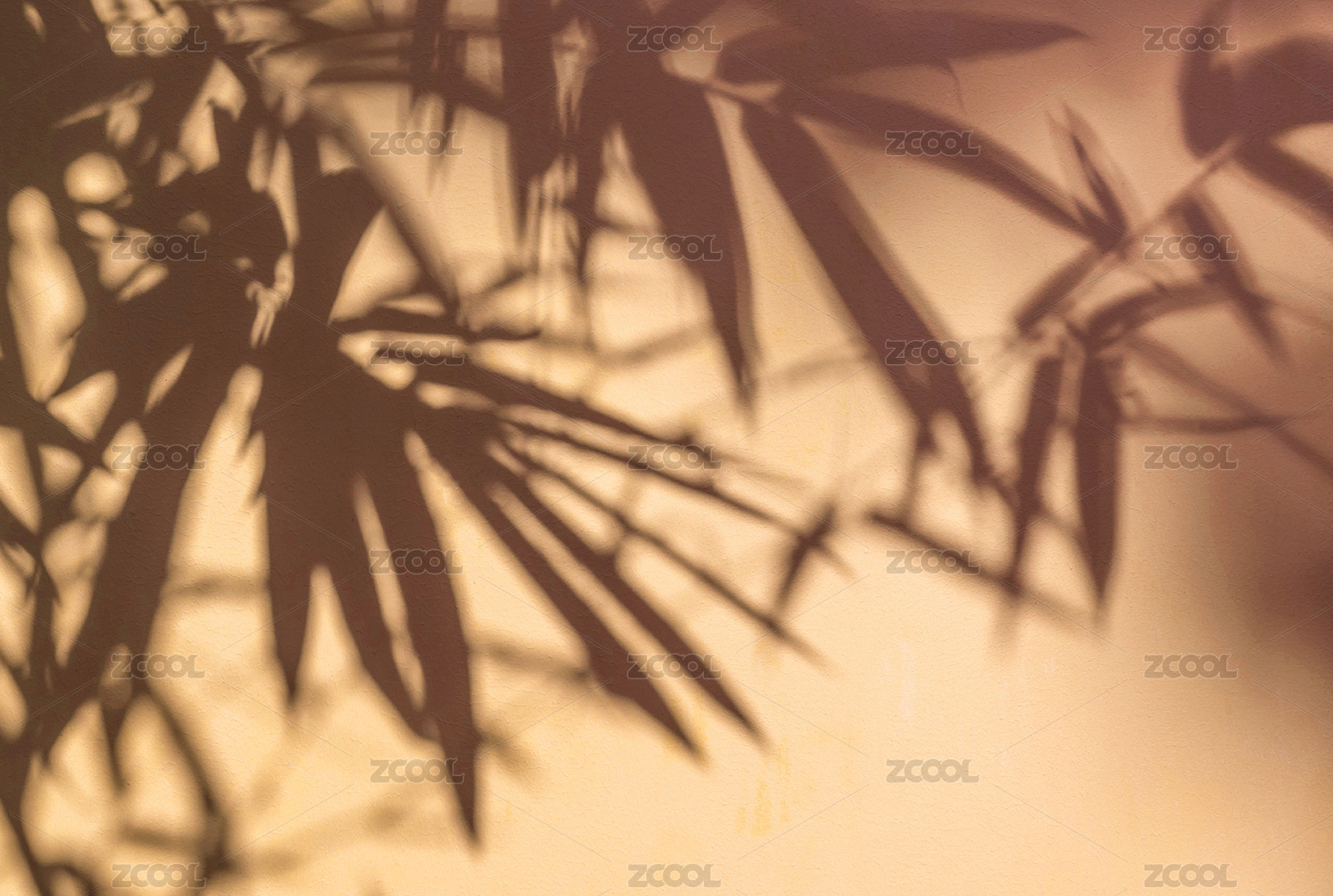 阳光下黄色墙壁上斑驳的竹叶影子和竹林