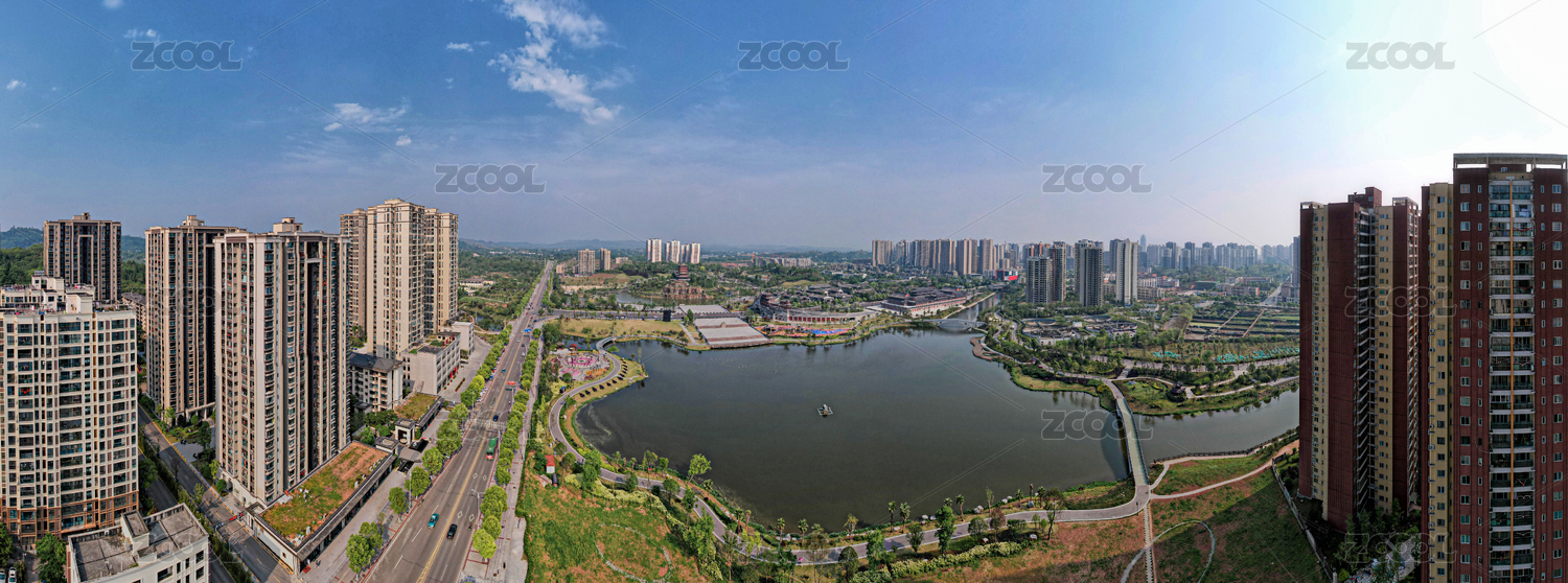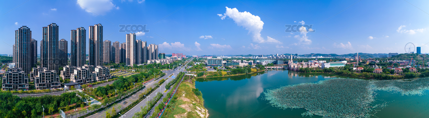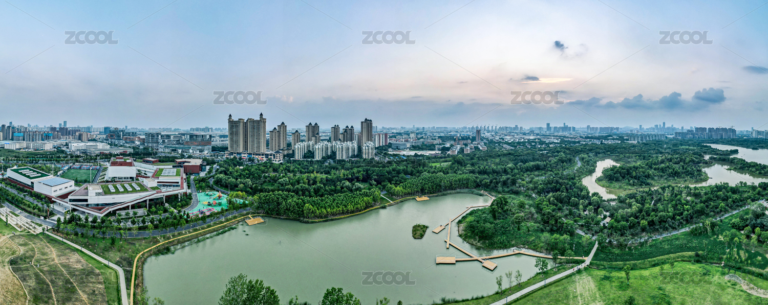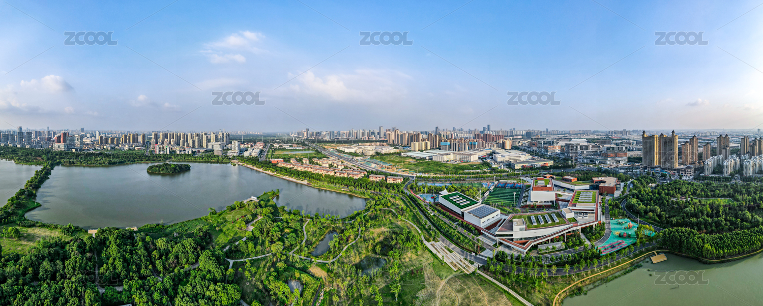 航拍郑州高新区天健湖公园城市湿地湖泊水系