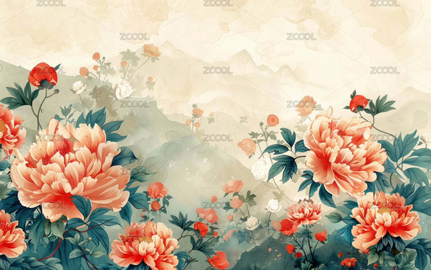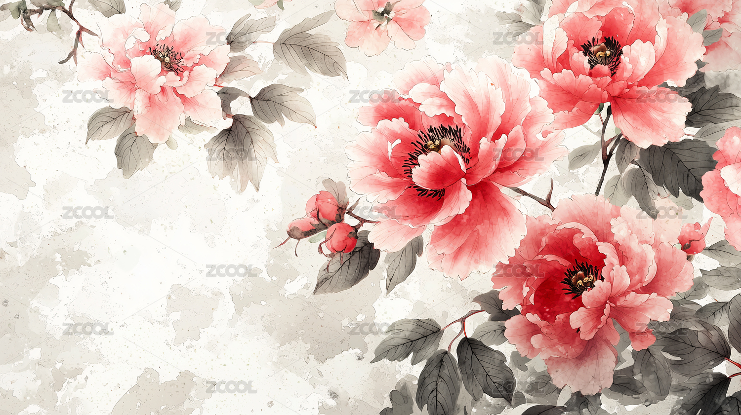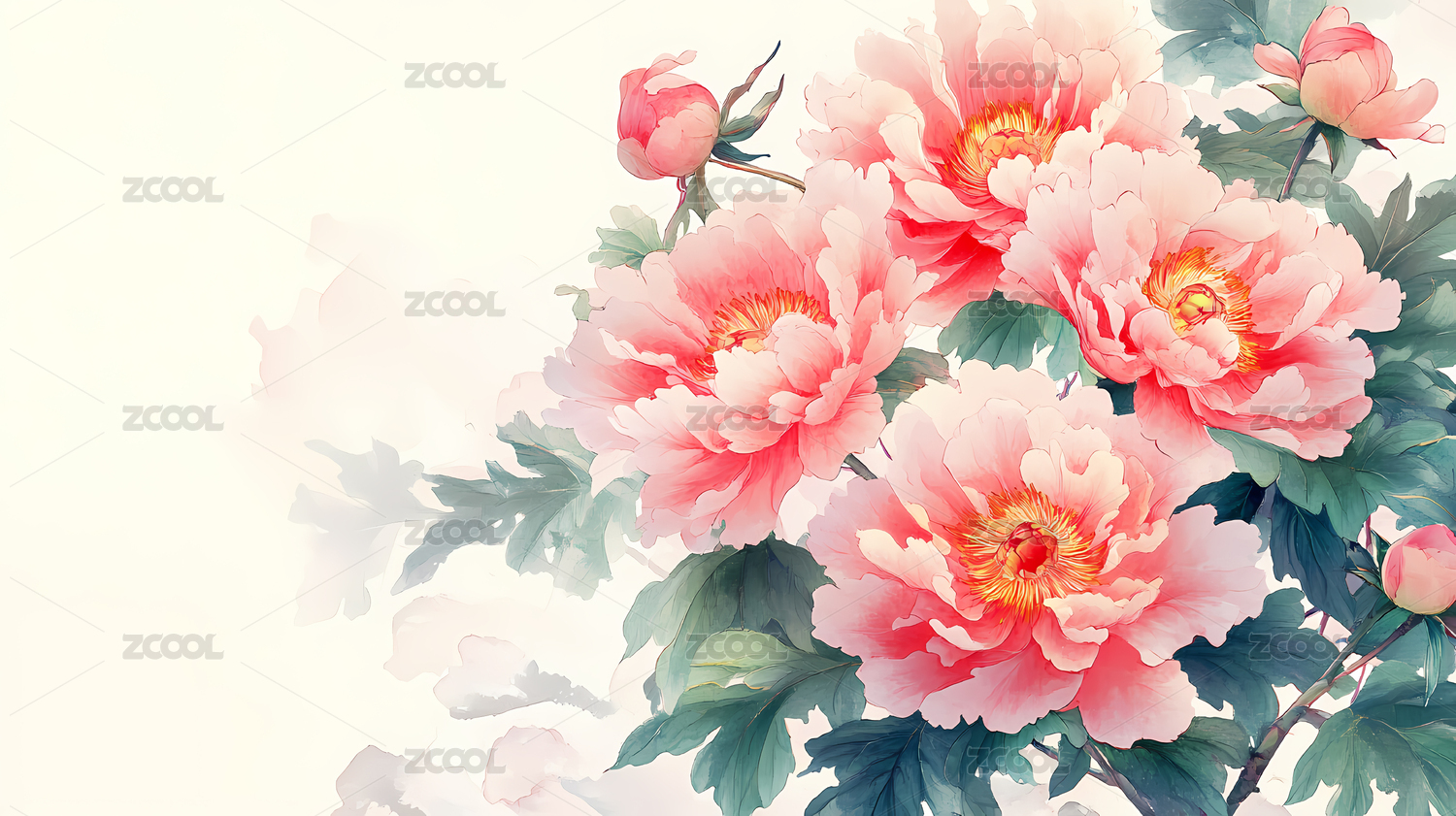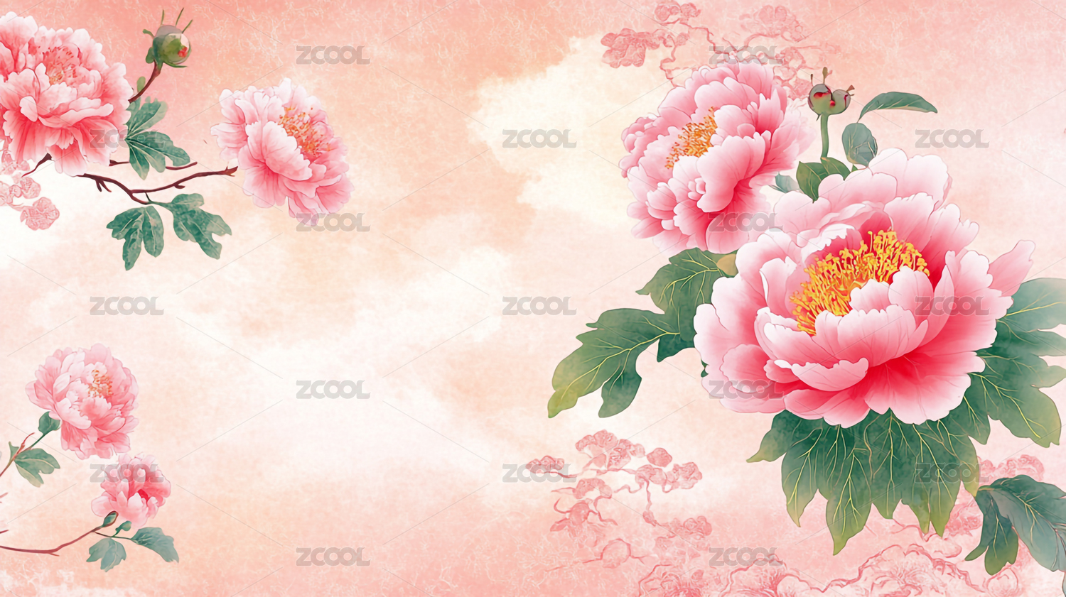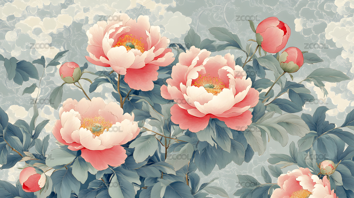牡丹花,工笔画,国潮风,中式,插画,插图,留白,国风,国画,精美