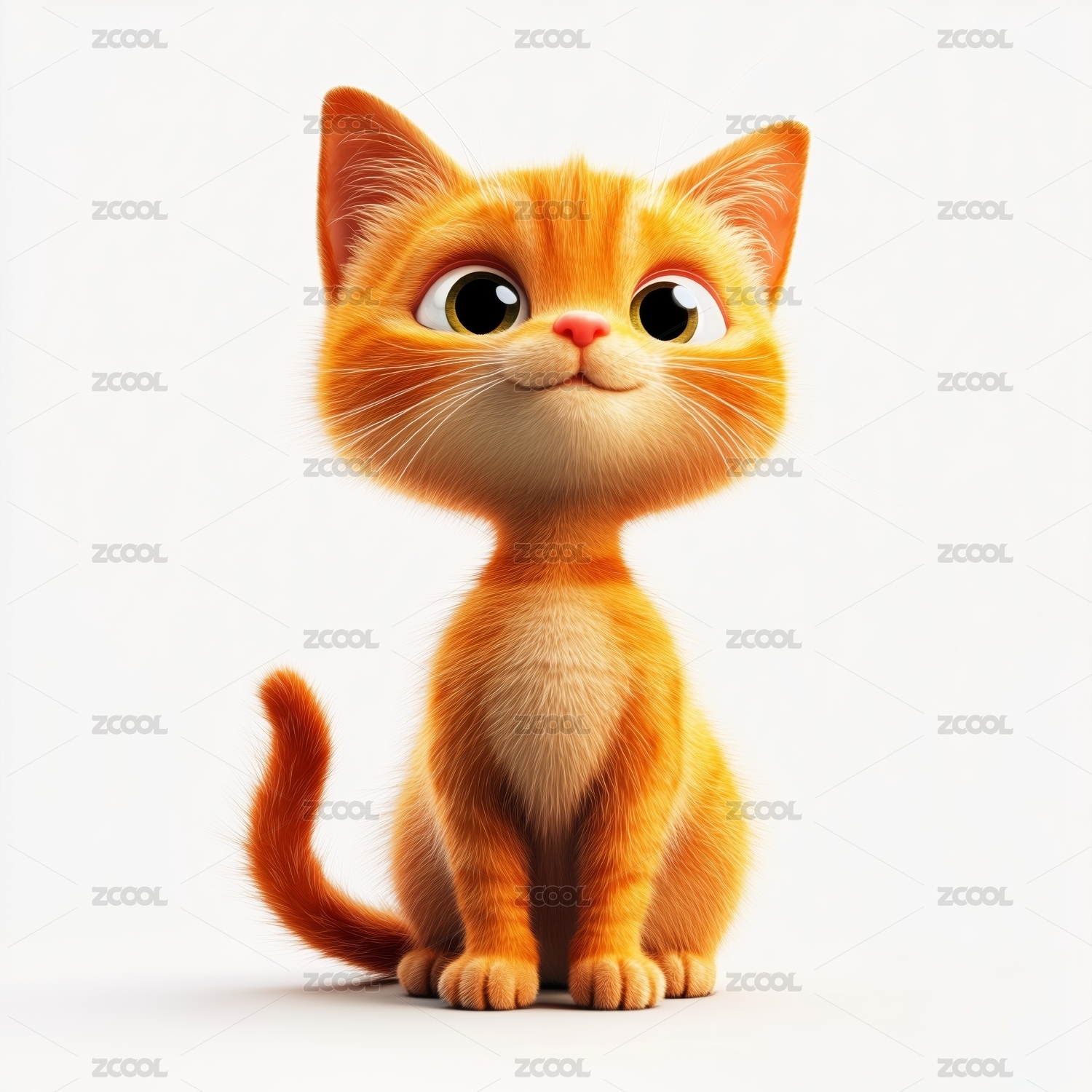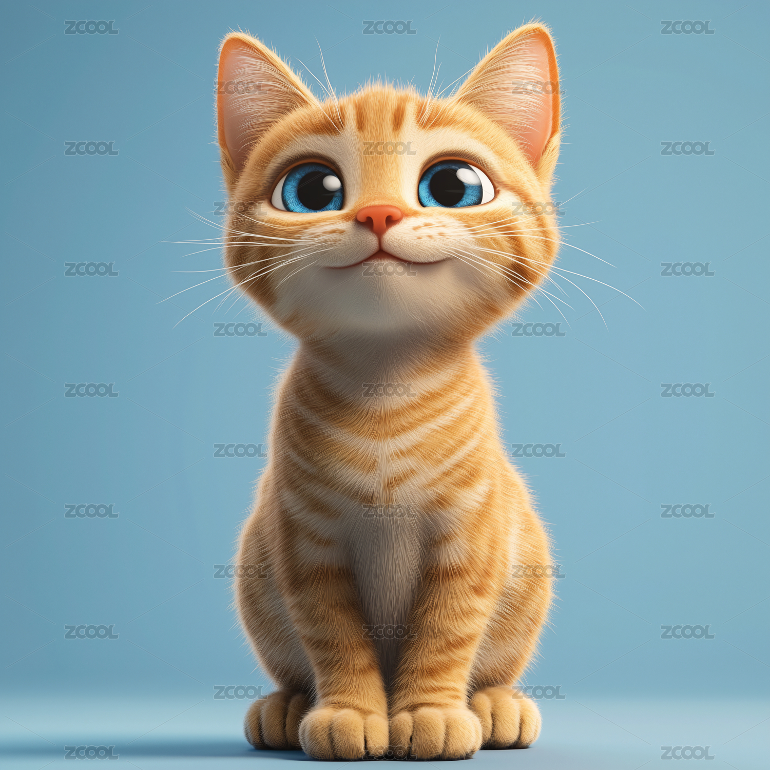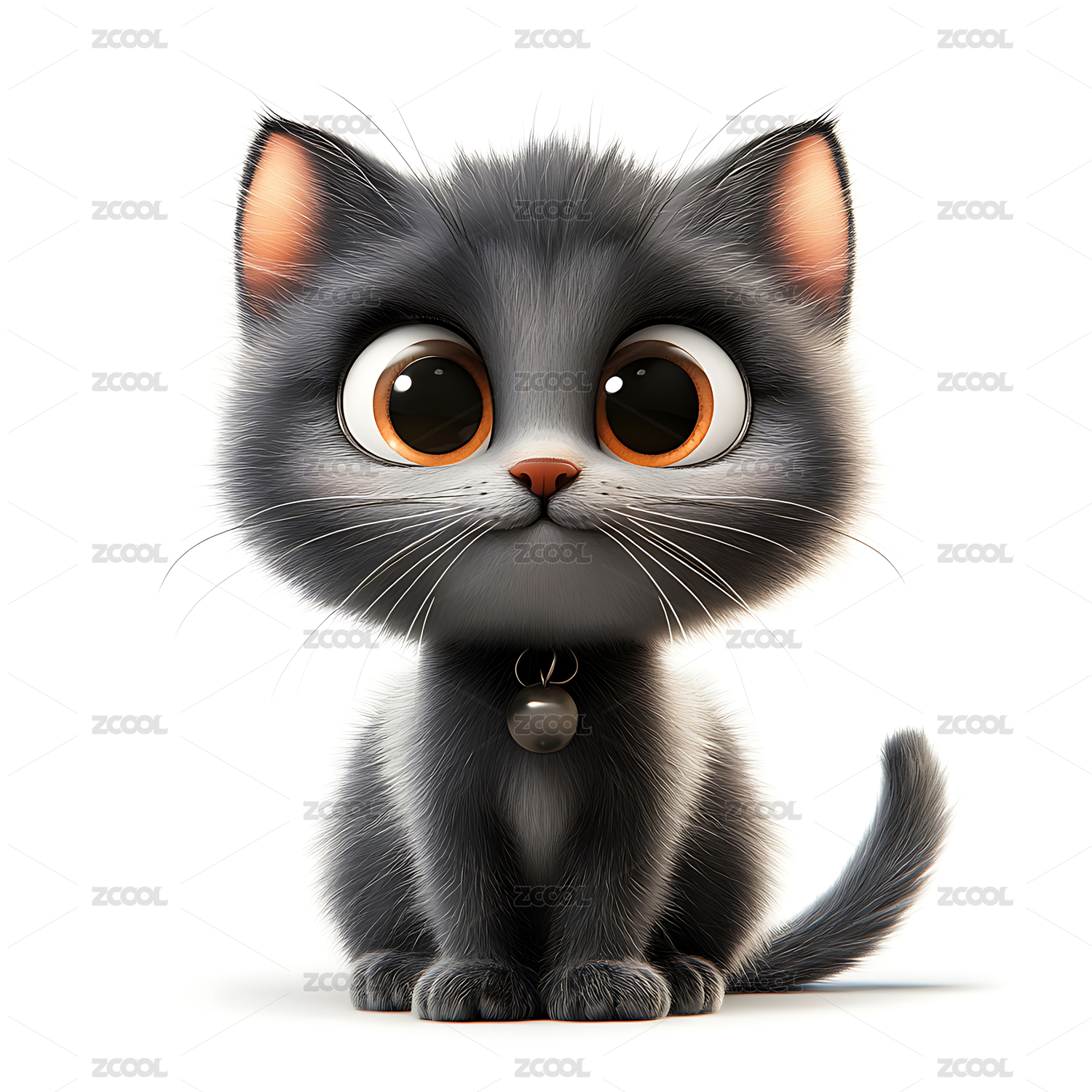 卡通呆萌大眼睛的小猫玩具公仔插画