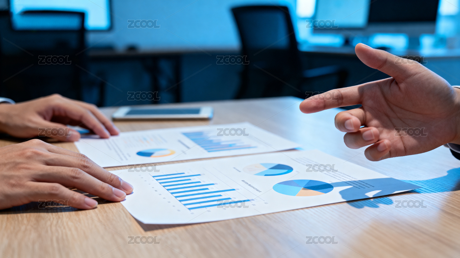 两个亚洲女商人在办公室表格的图discussng。上的侧视图。合作伙伴讨论概念。