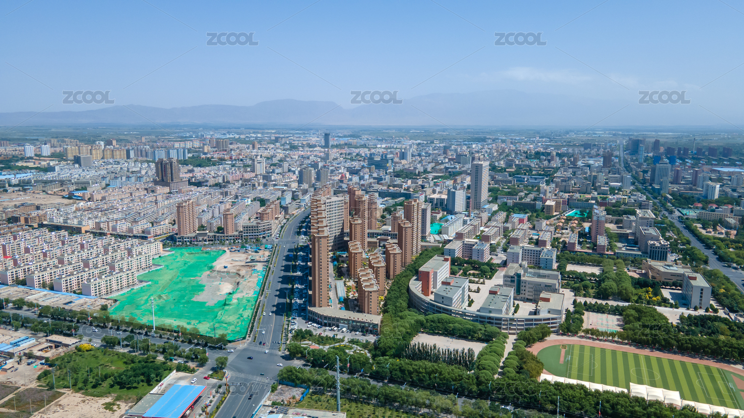 中国甘肃张掖城市风光航拍景观