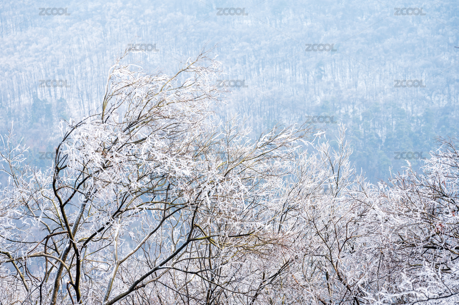 南京老山森林公园雪后雾凇的美景