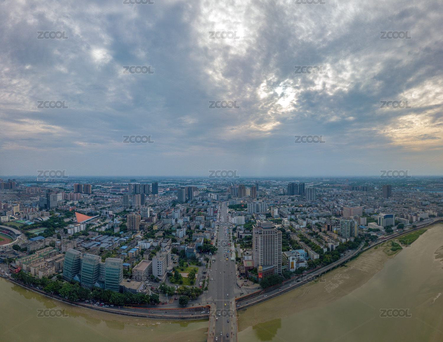 航拍四川省德阳市全景图