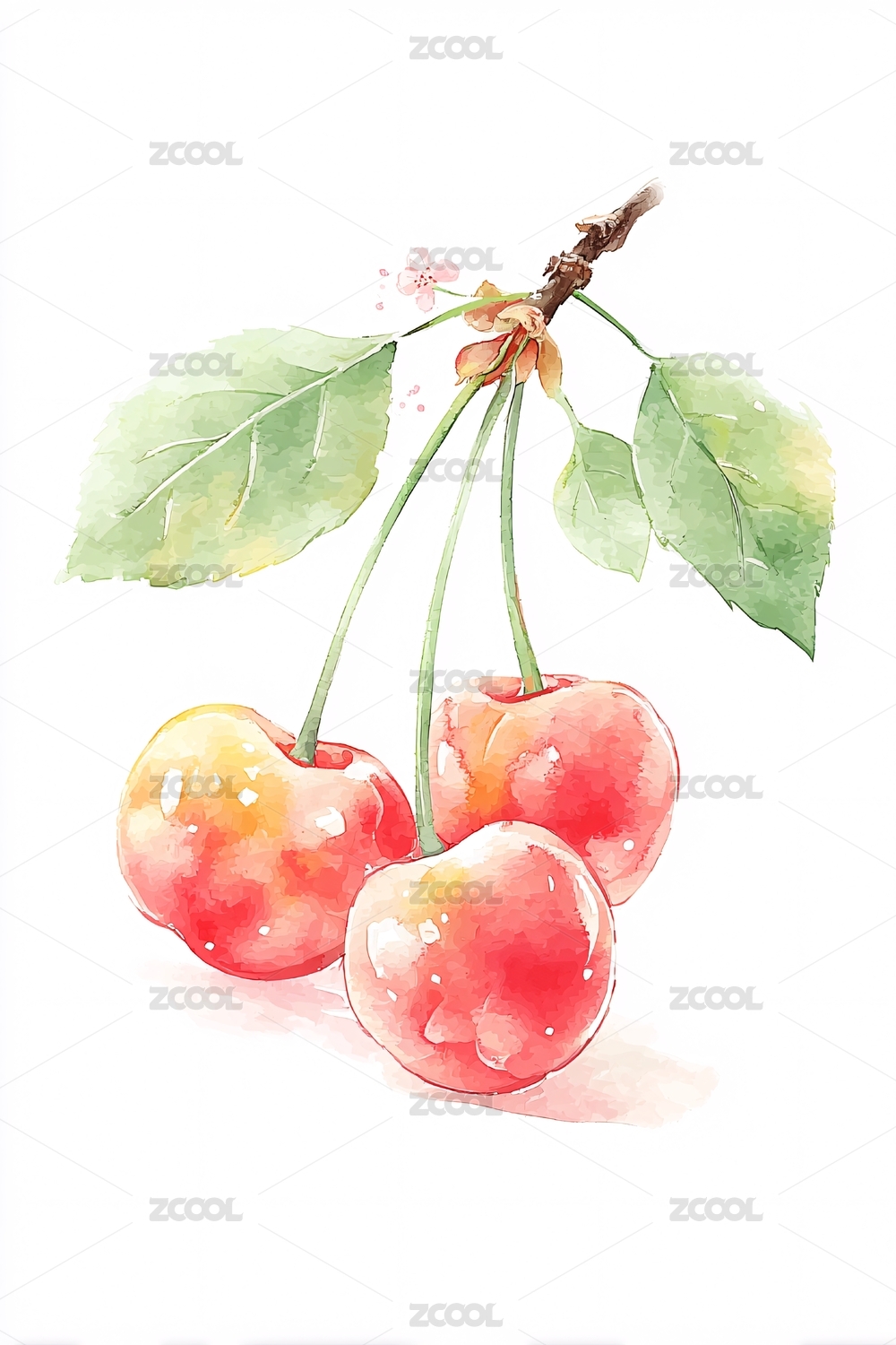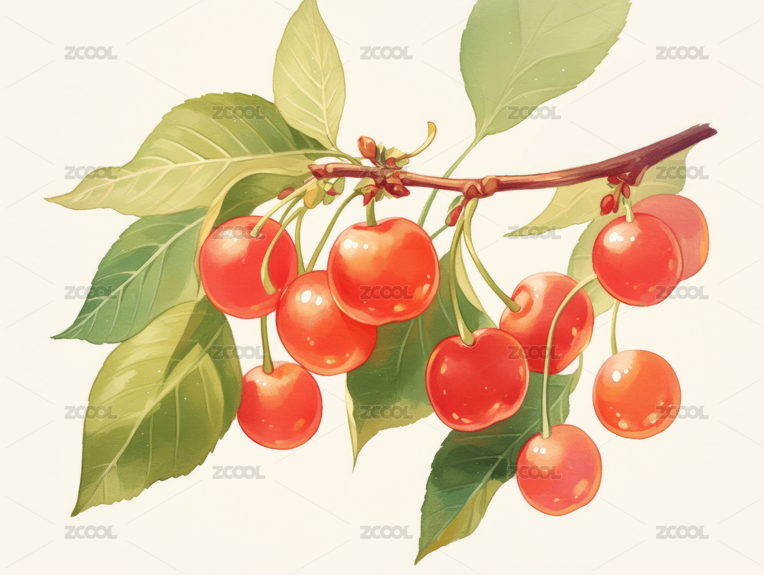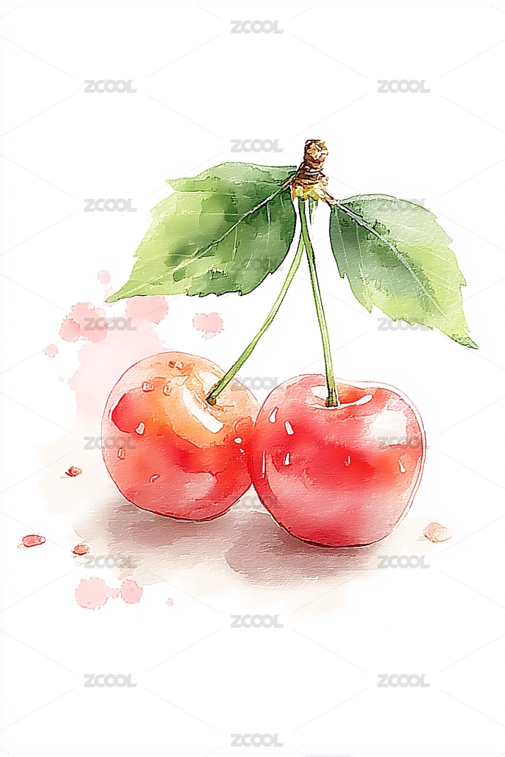 水果,无人,食品,特写,红色,饮食,手绘,叶子,甜食,圆形