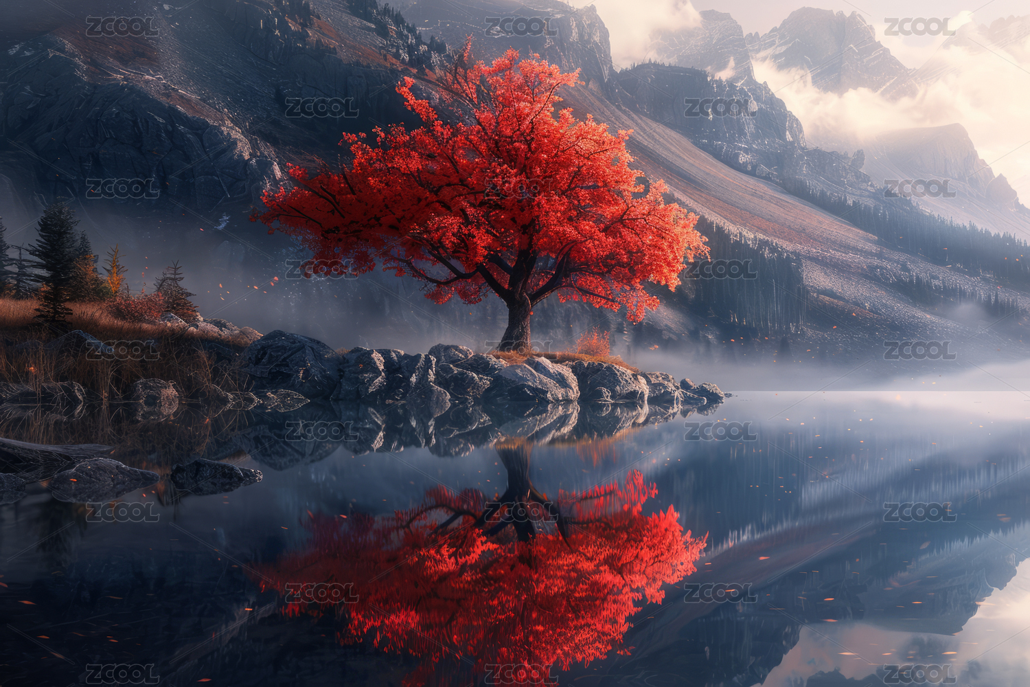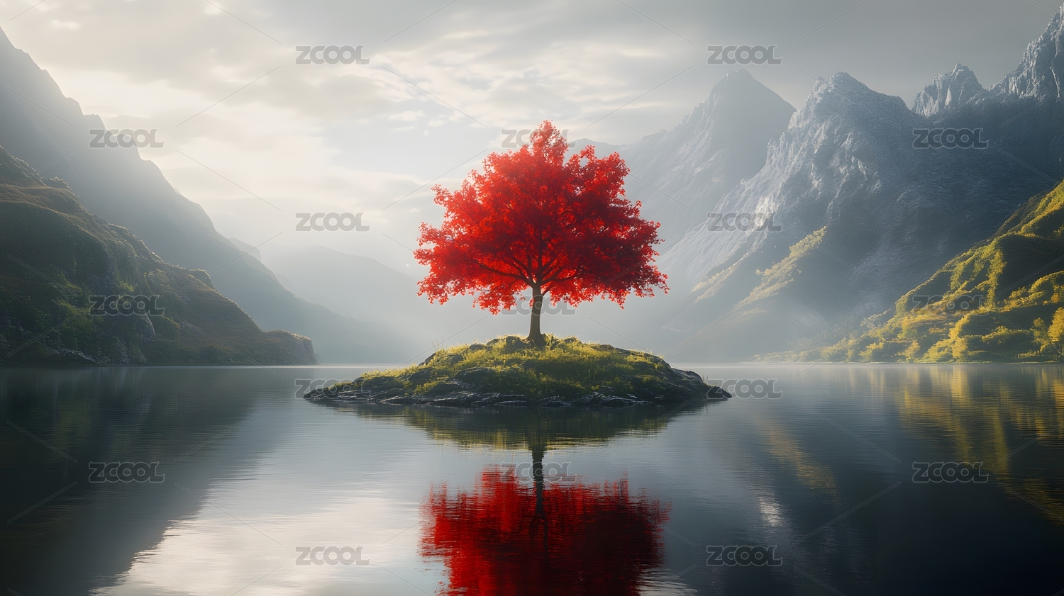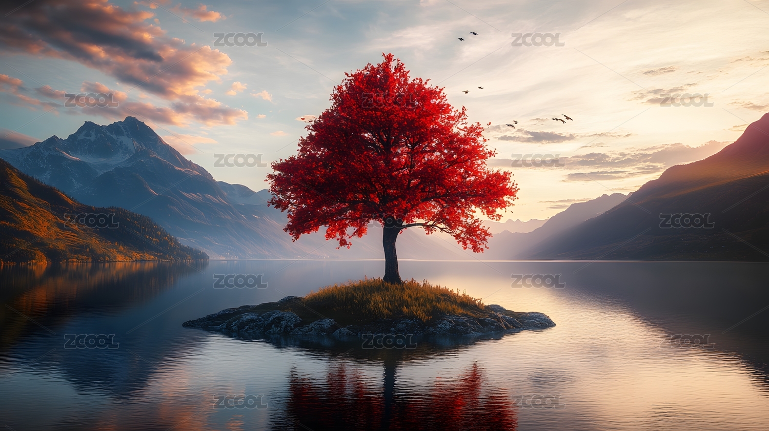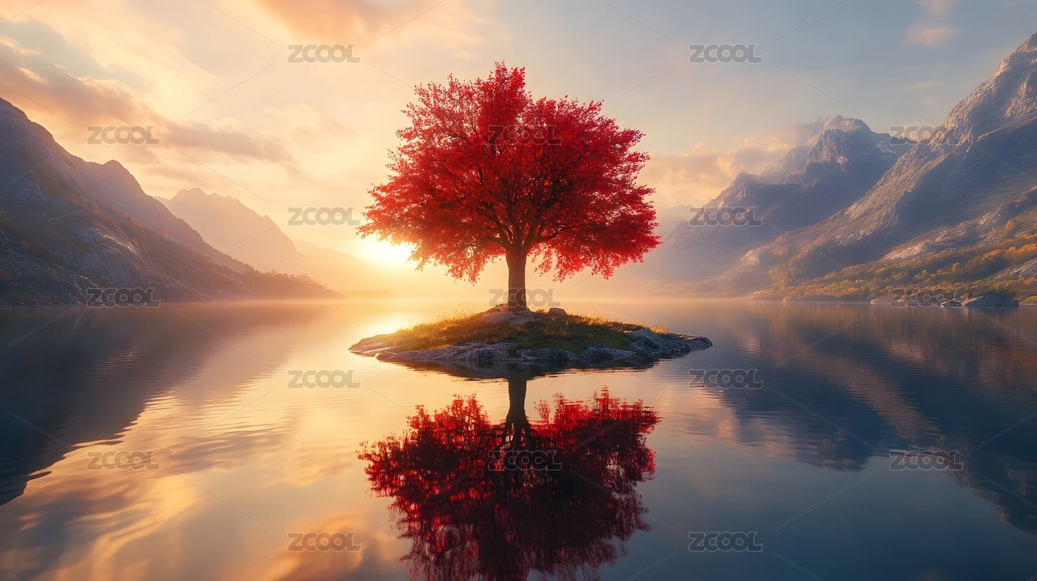 背景,高清,3d,立体,空间,树,粉色,水,海水,山
