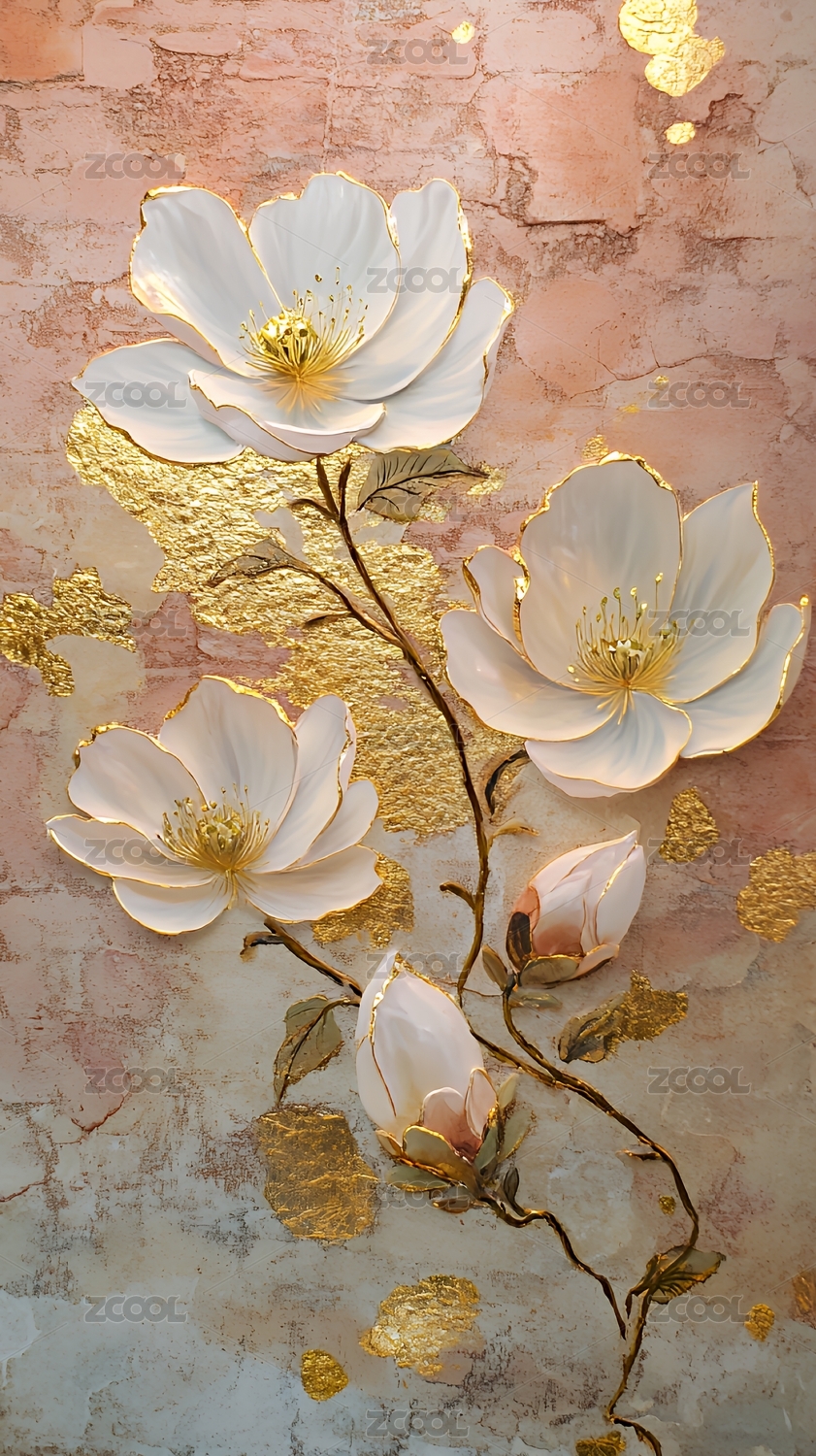 国风,国潮,植物,光感,花,花朵,大朵,金色,花蕊
