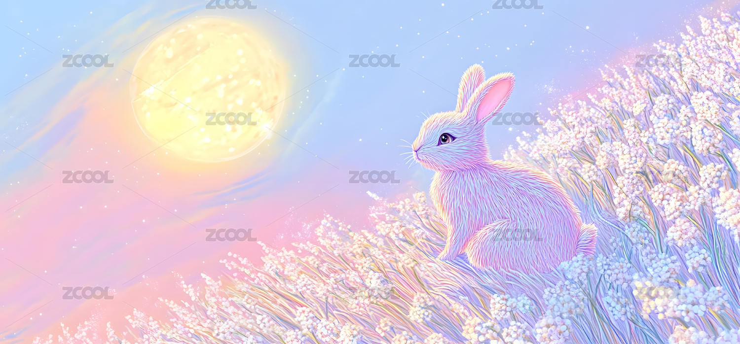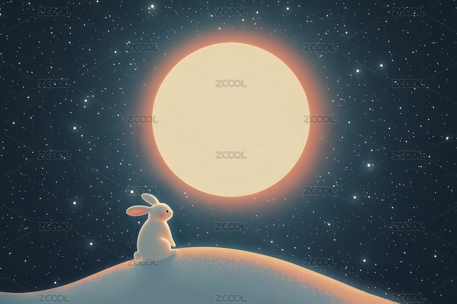 月满中秋节日玉兔愉快地赏月氛围感美景