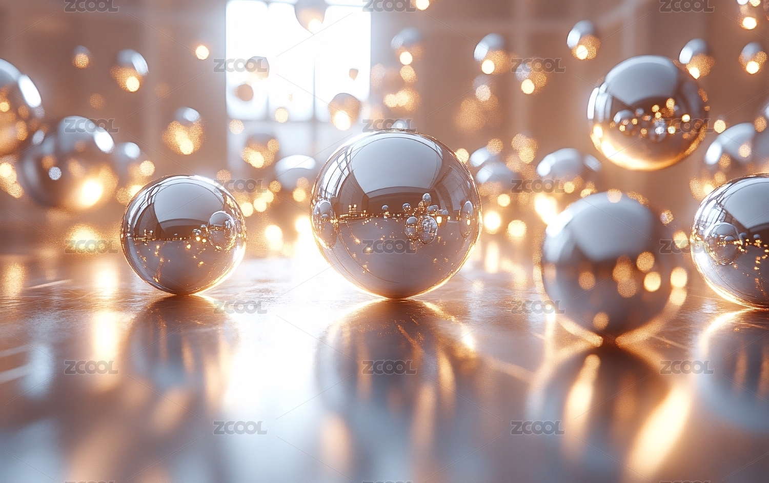 银色气泡悬浮在闪光背景