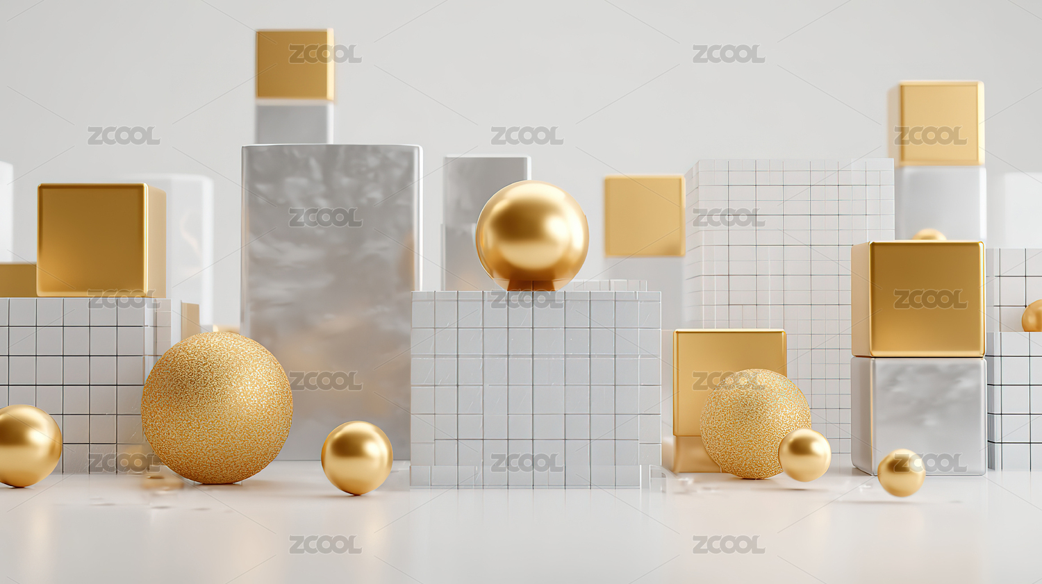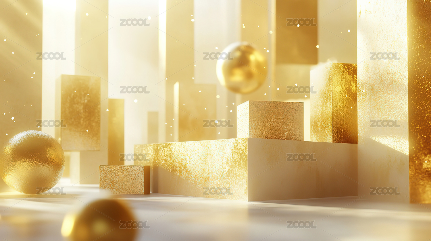 金色球体与几何方块组合