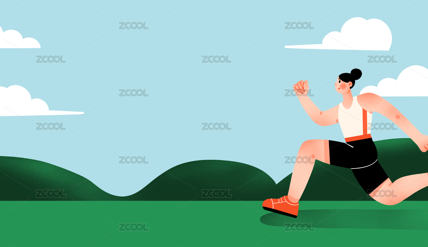 夏天人物清晨跑步运动健身健康减肥锻炼插画