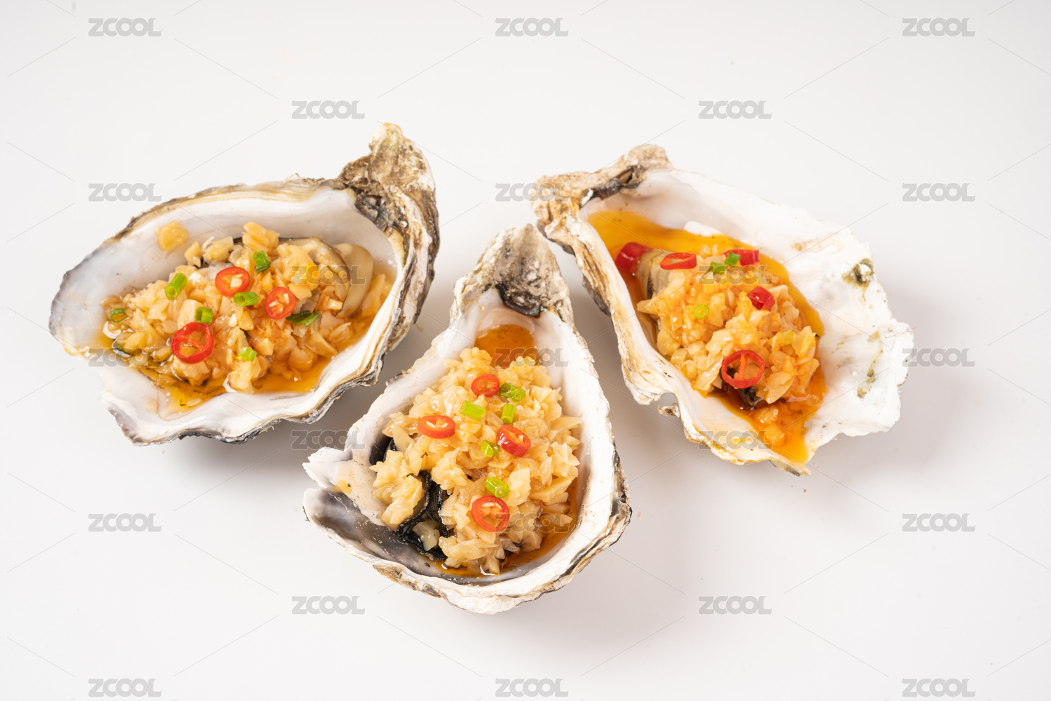 白底上的蒜蓉生蚝