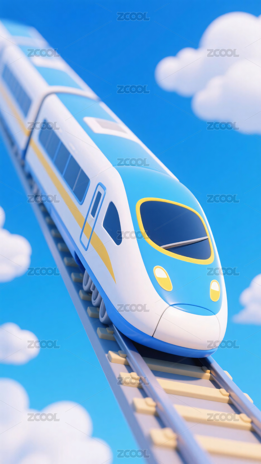 交通工具,卡通,3D,插画,可爱风,彩色,磁悬浮列车