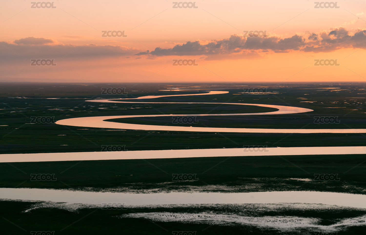 新疆巴音布鲁克九曲十八弯日落