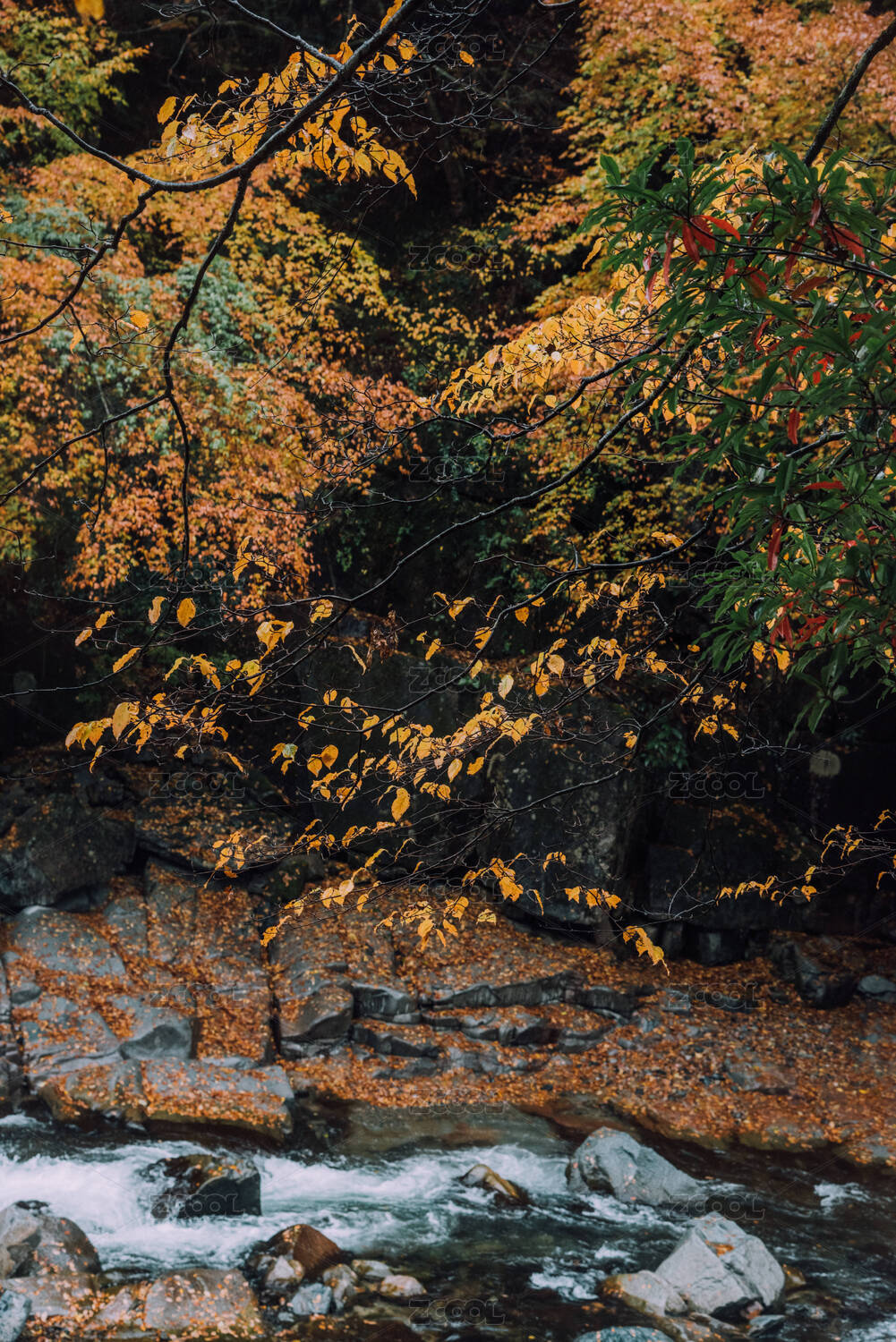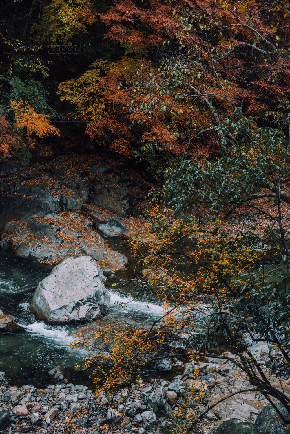 中国四川巴中光雾山景区米仓山黑熊沟的红叶