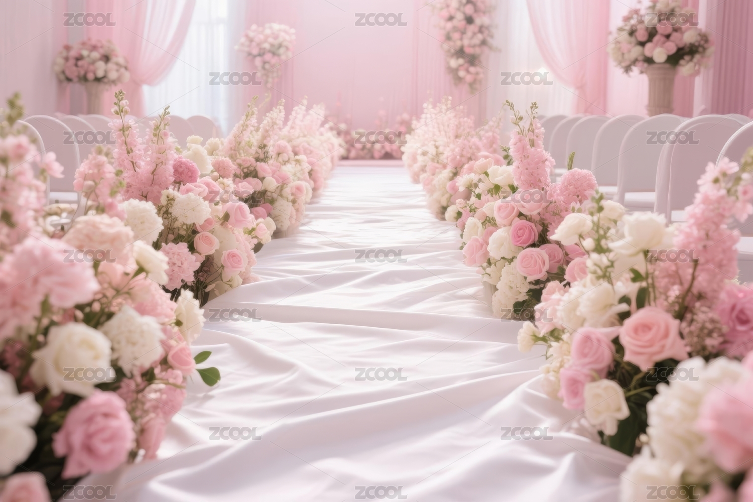 粉色花束浪漫婚礼场景